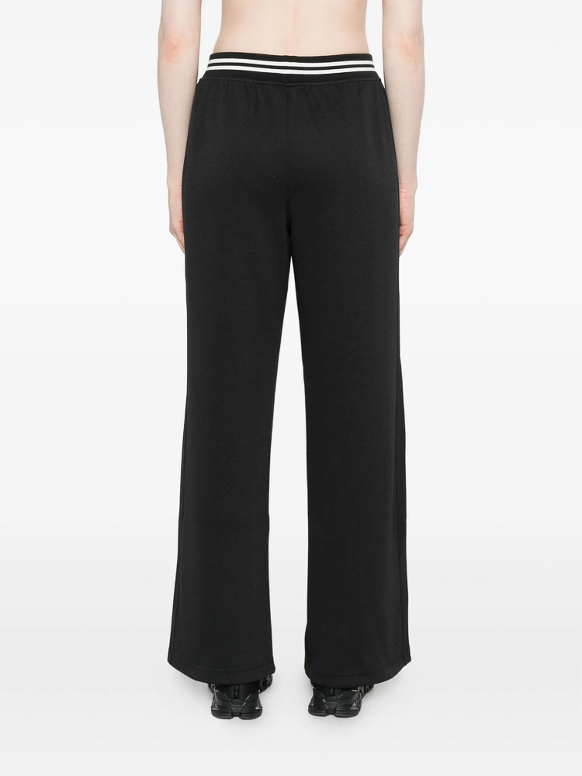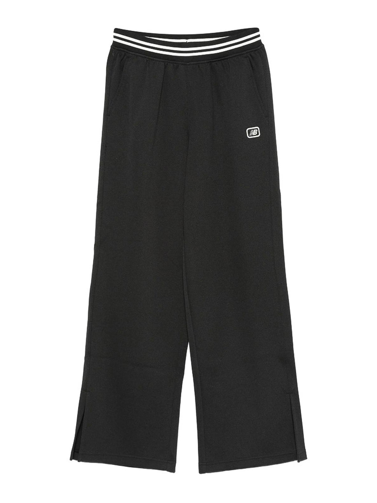 ブラック伸縮性ウエストバンド、サイドスプリット、スモールロゴパッチ、ストレートレッグフラットフロント