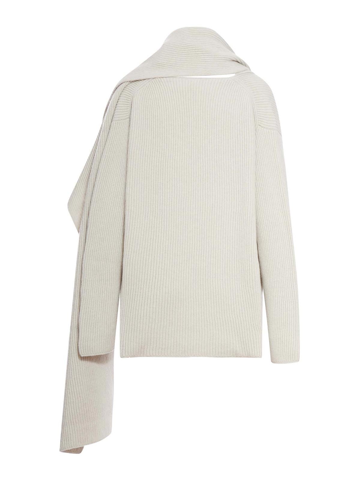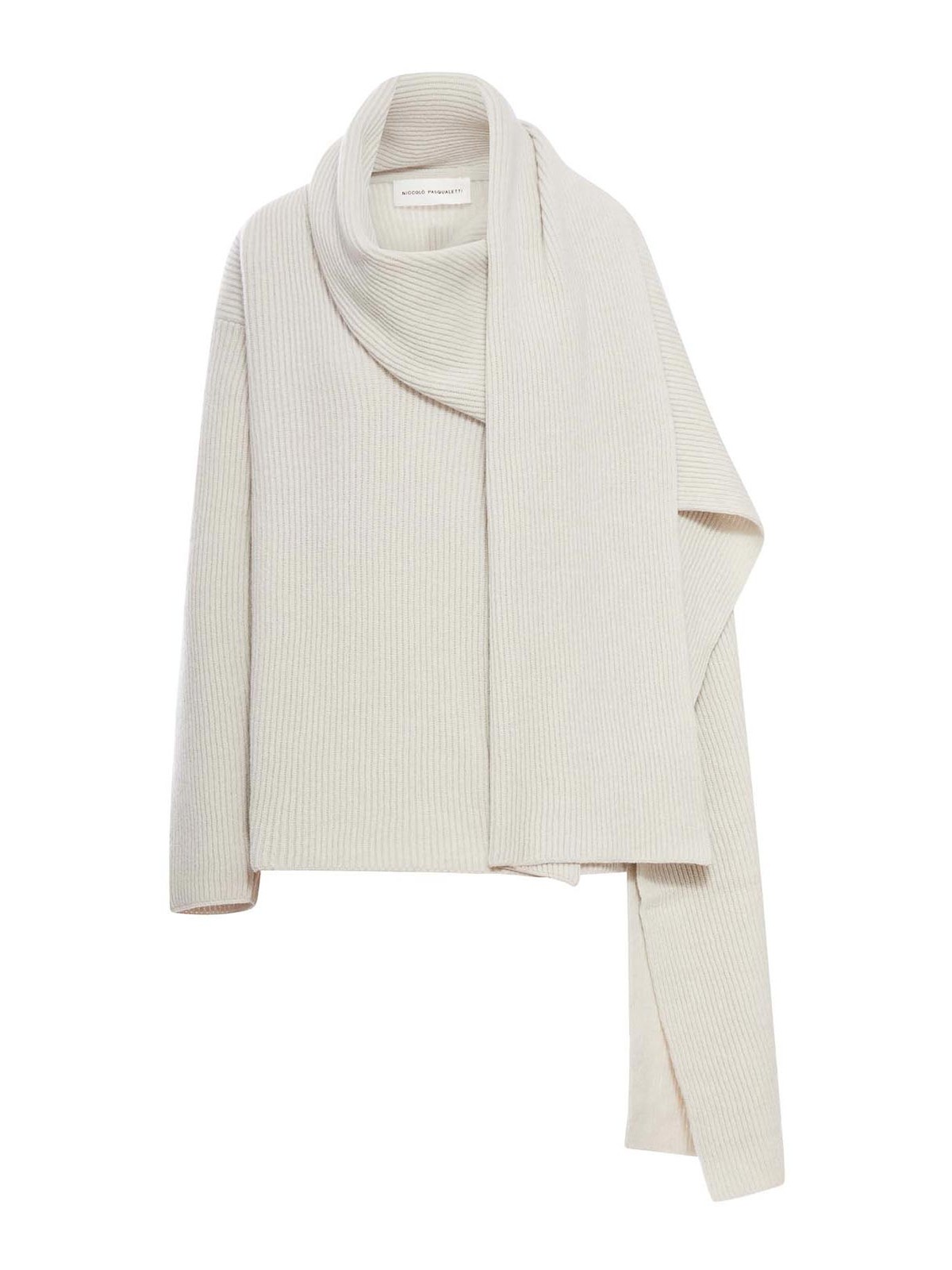 クルーネック、スカーフパネル、ドロップアームホール、ロングスリーブ、ストレートリブヘム、-カラークリーム
