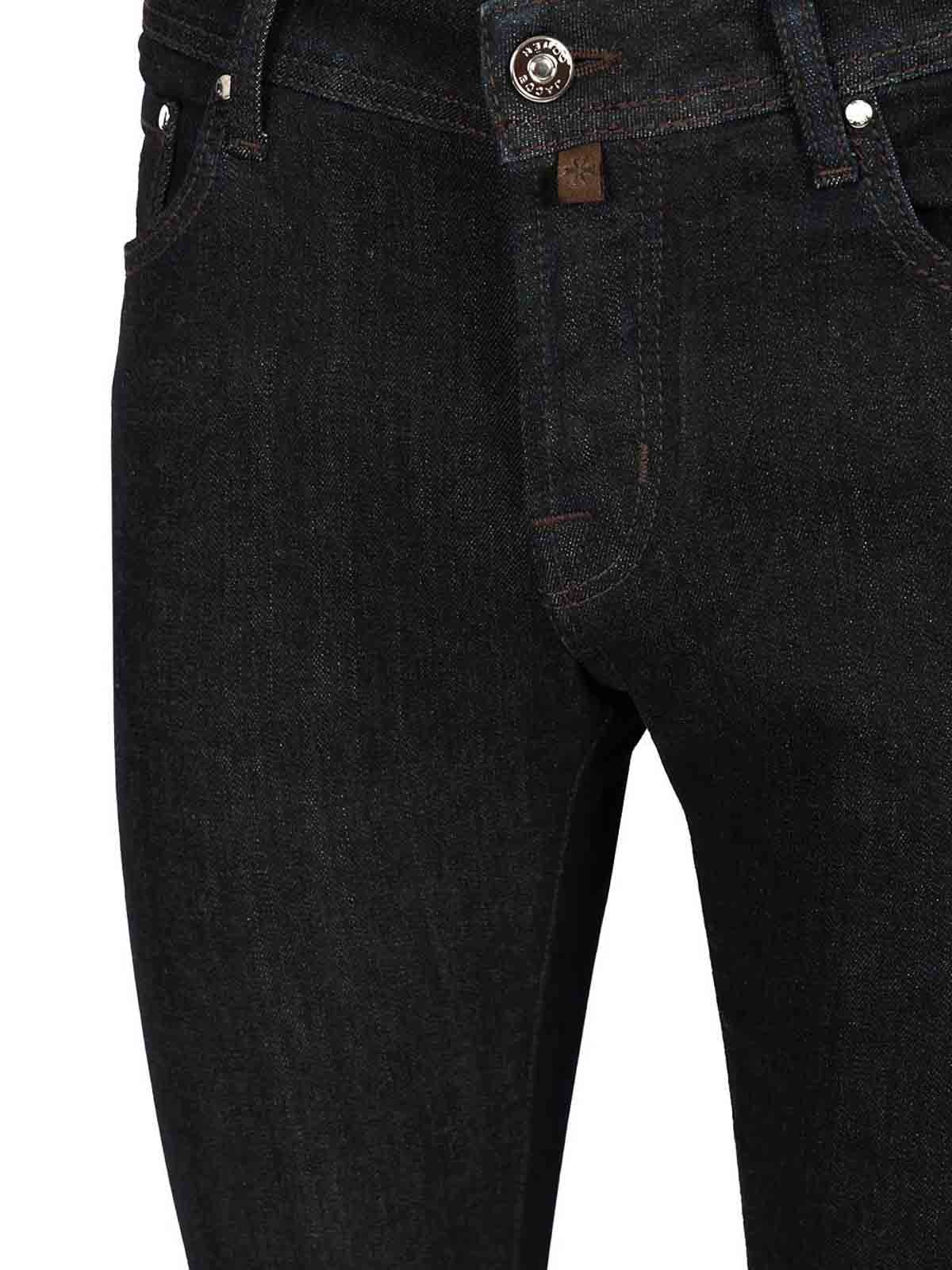 ジェイコブ・コーエンのスーパースリムフィットのニックジーンズは、タバコステッチを施したストレッチデニム製で、ローウエスト、ロゴ入りのポニースキンのラベル、ストレートでスリムなレッグが特徴です。
