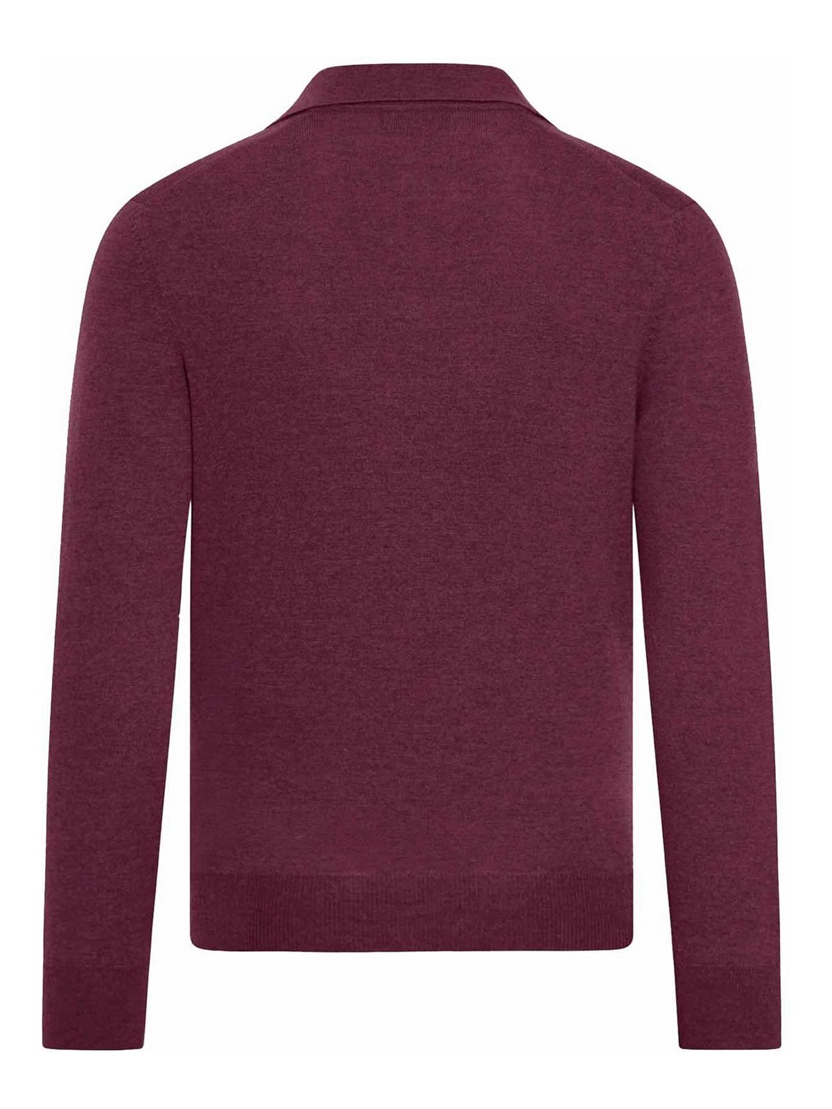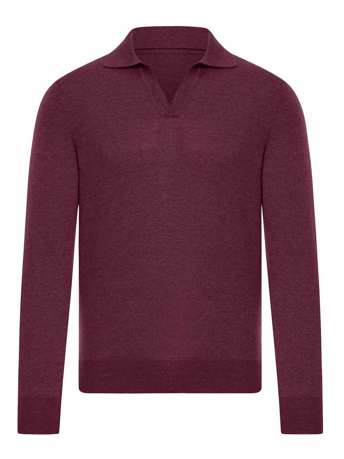 アスレジャースキッパーセーター、極細テクニカルメリノウール、しわになりにくく、通気性の高いお手入れが簡単な糸、ポロスタイルの襟、長袖、クラシックフィット、リブ付きトリム、色:バーガンディ