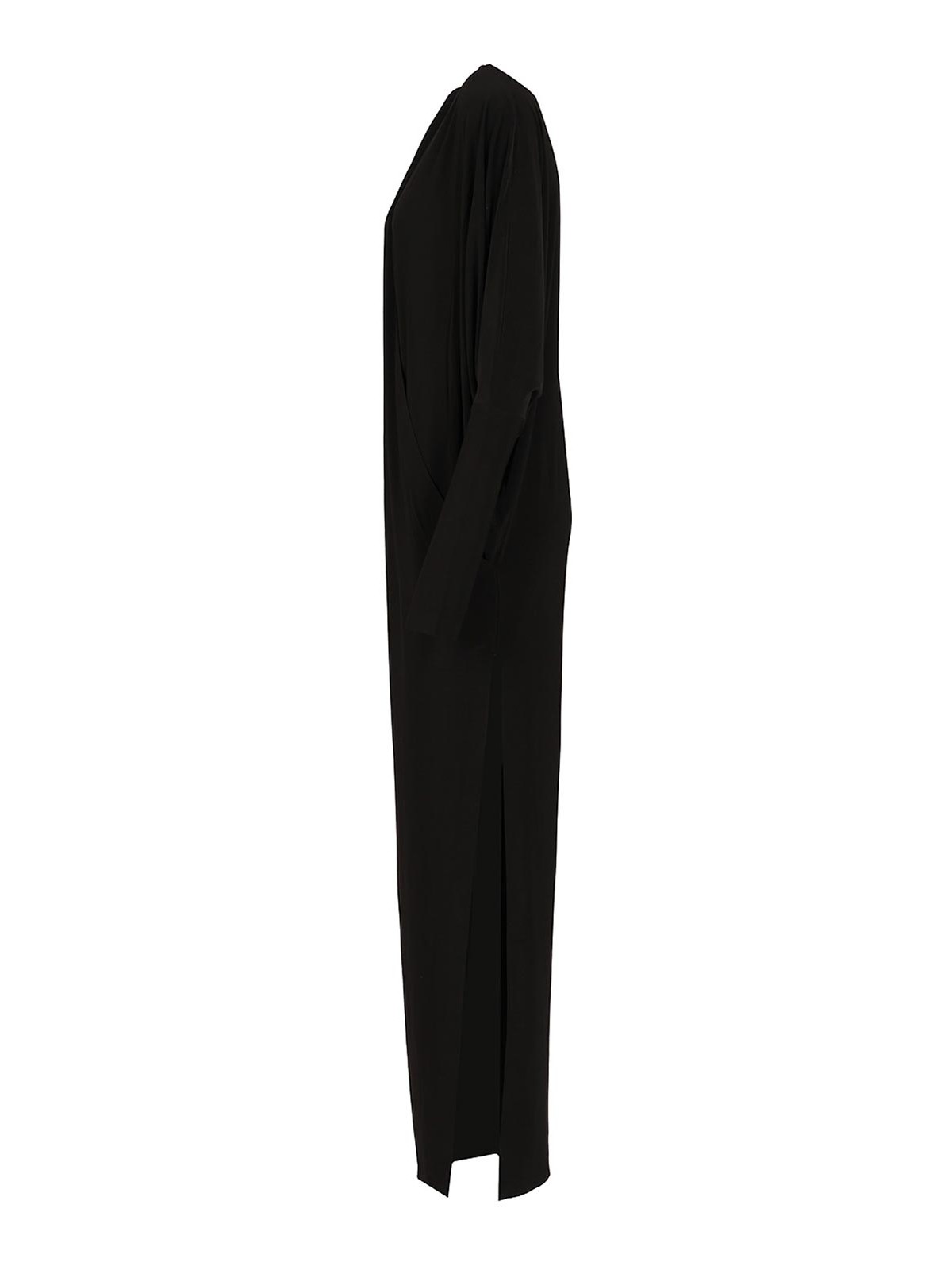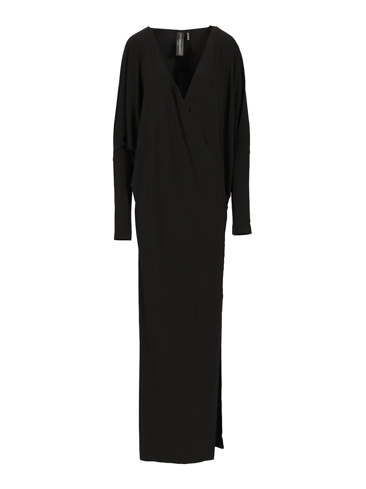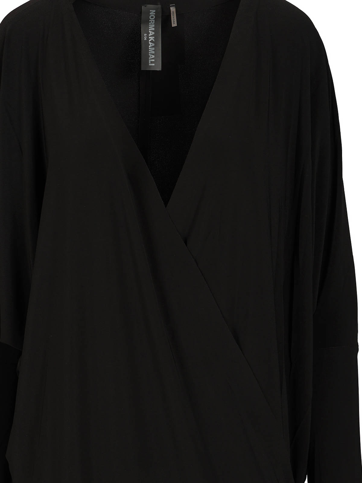 ノーマカマリのストレッチ生地のドルマンドレス、サイドスリット、ドルマンスリーブ、Vネックライン付き