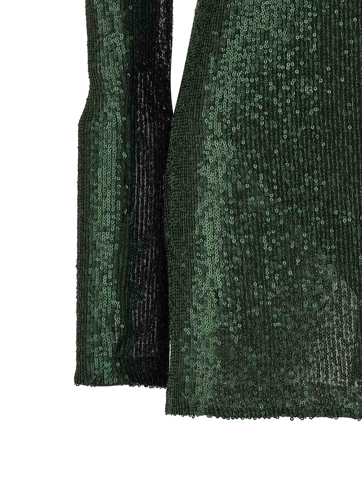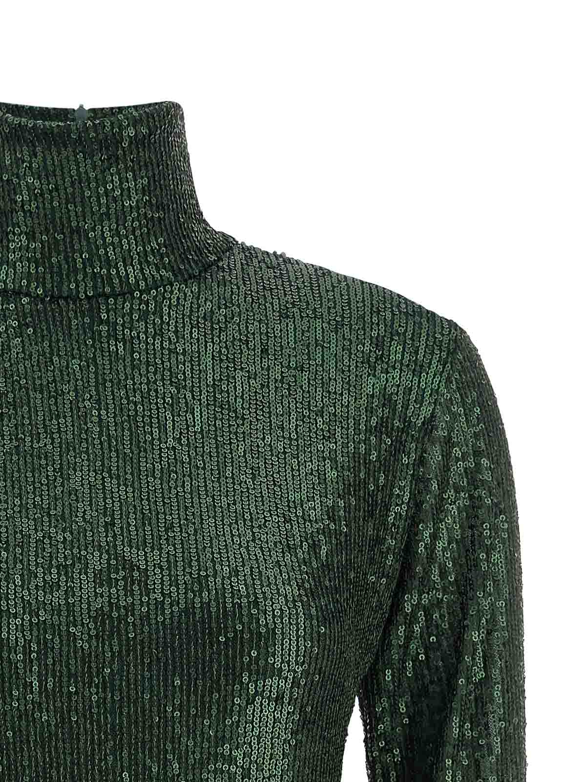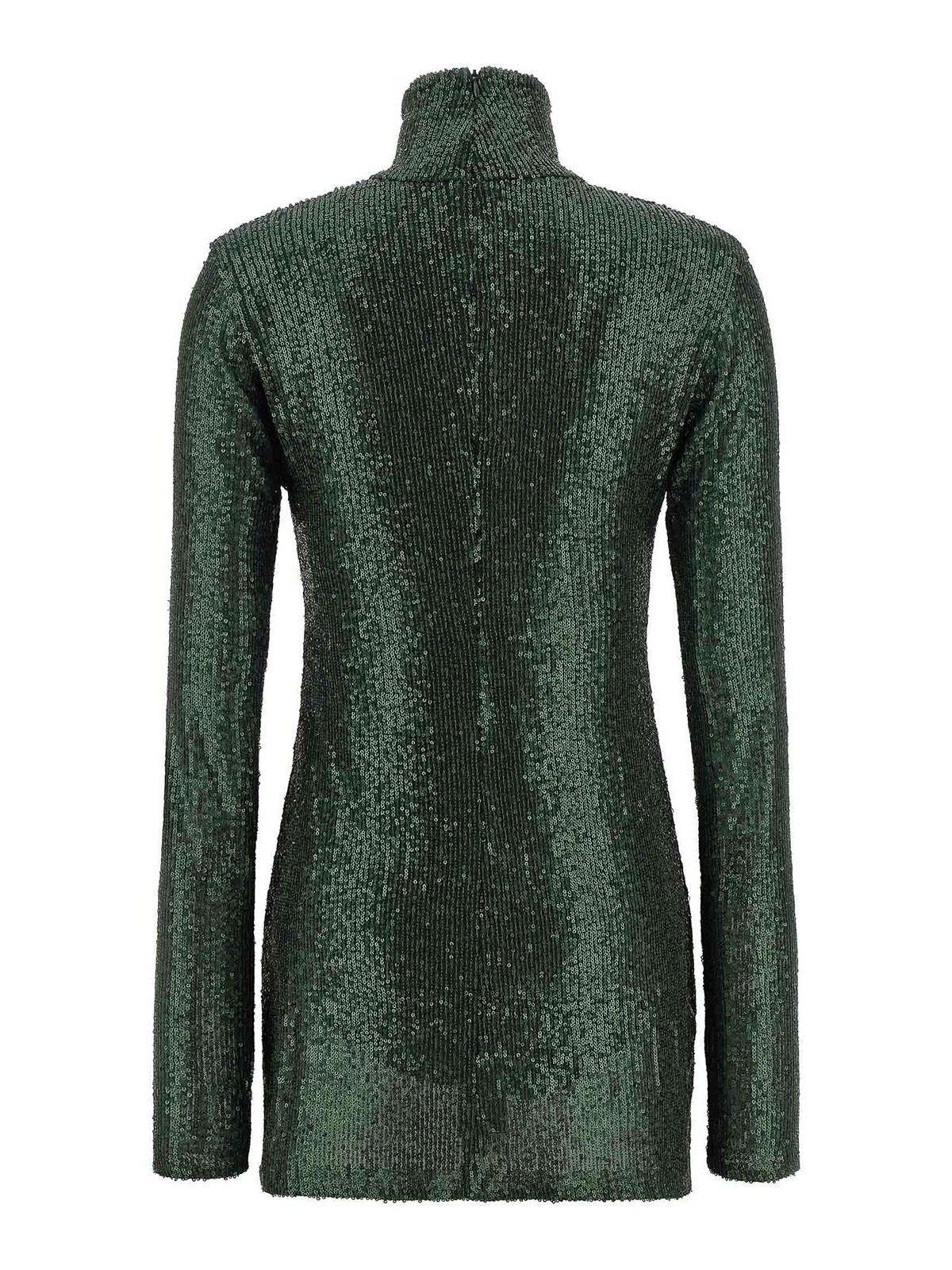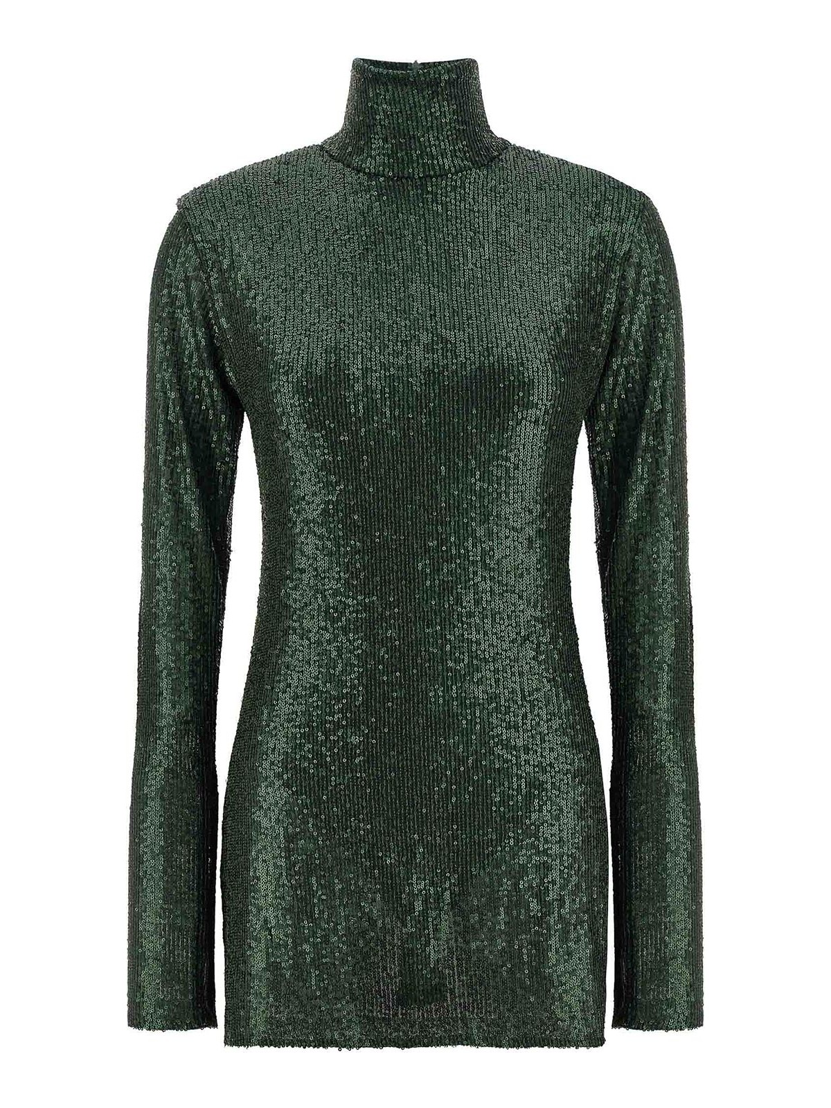 全体にスパンコールで覆われた生地のピックルボールミニドレス、ハイネック、親指穴付きロングスリーブ、一体型伸縮ボディスーツ、バックファスナー。
