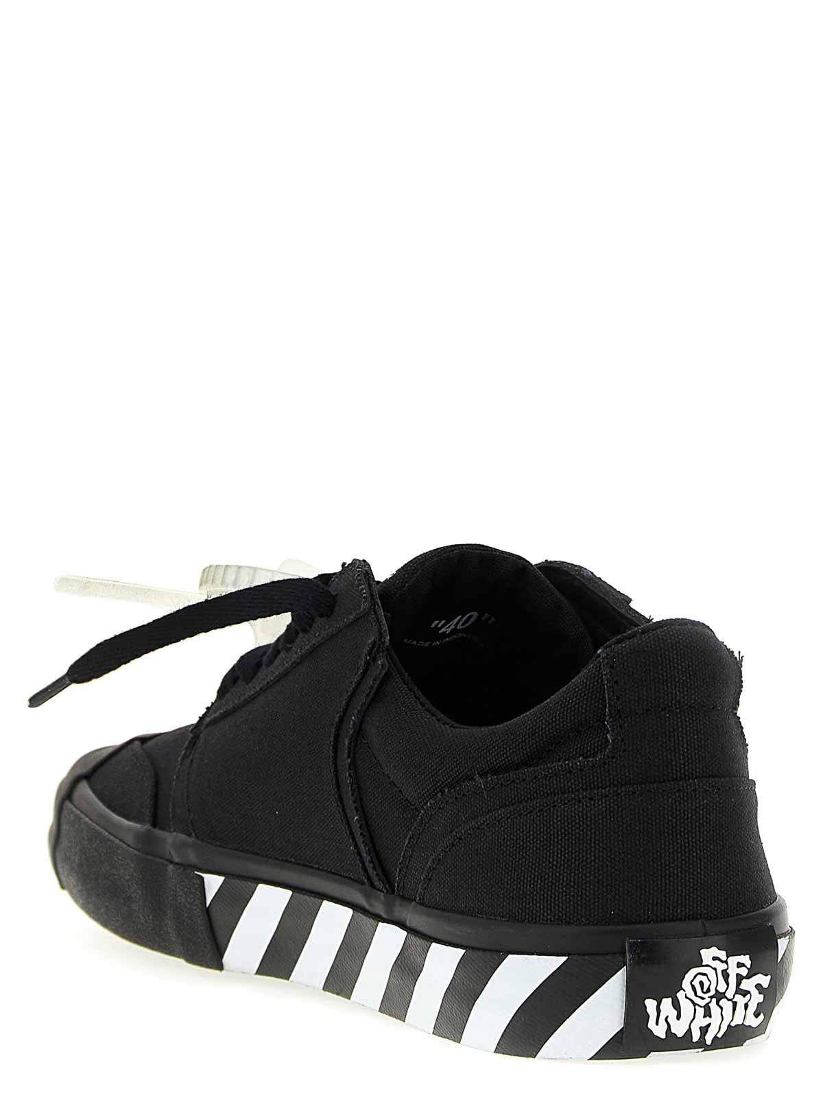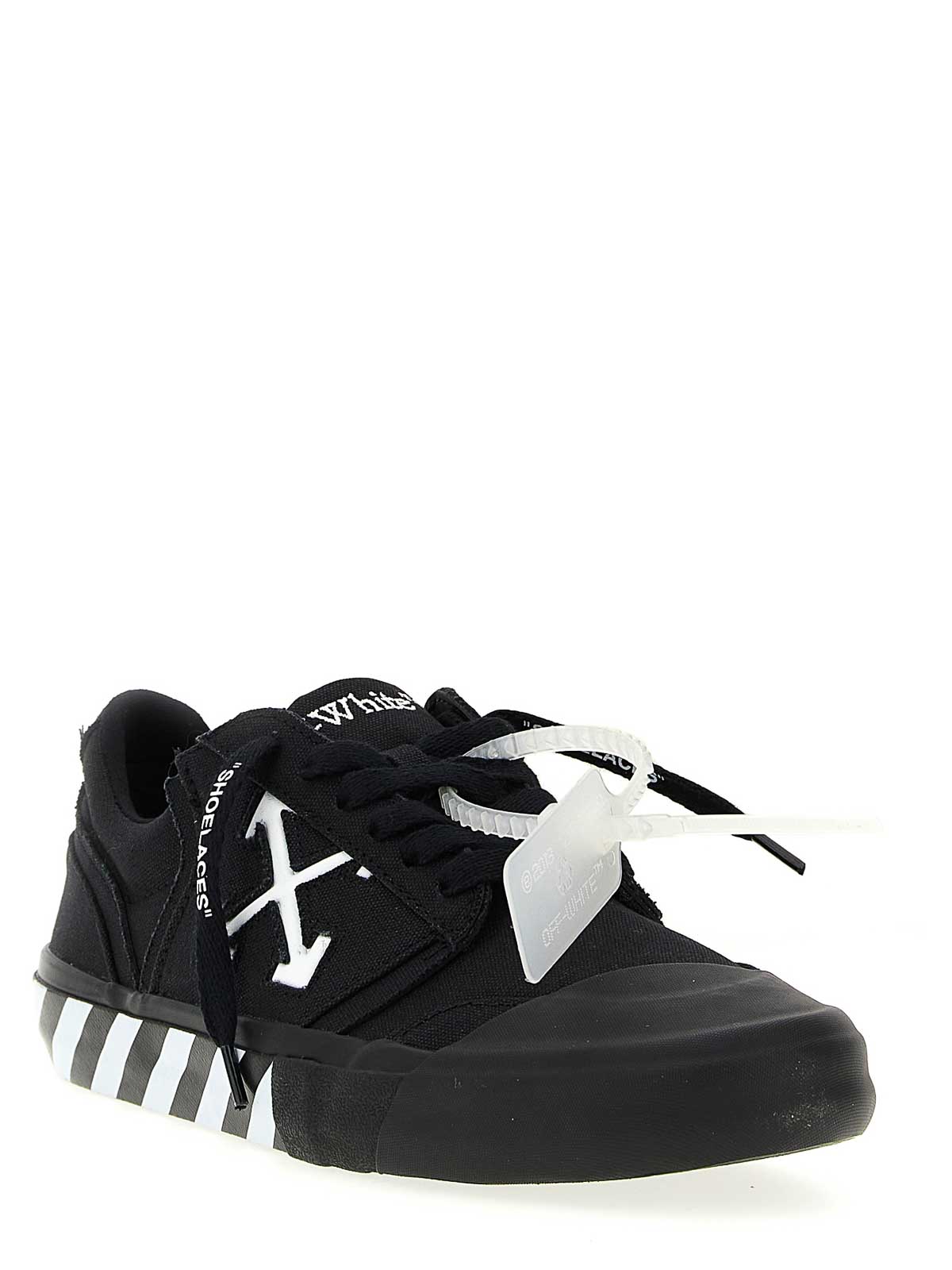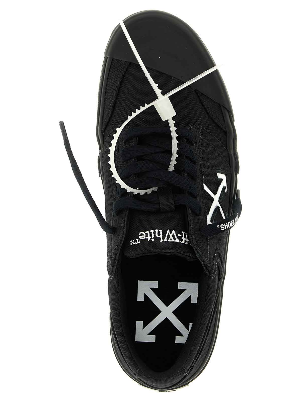 コントラストカラーのサイドカットアウトロゴ、ロートップスタイル、プラスチック製の「ジップタイ」タグ、レースアップクロージャー、バルカナイズドラバーソール、トウキャップ付きバルカナイズドアンダーカットコットンキャンバススニーカー。