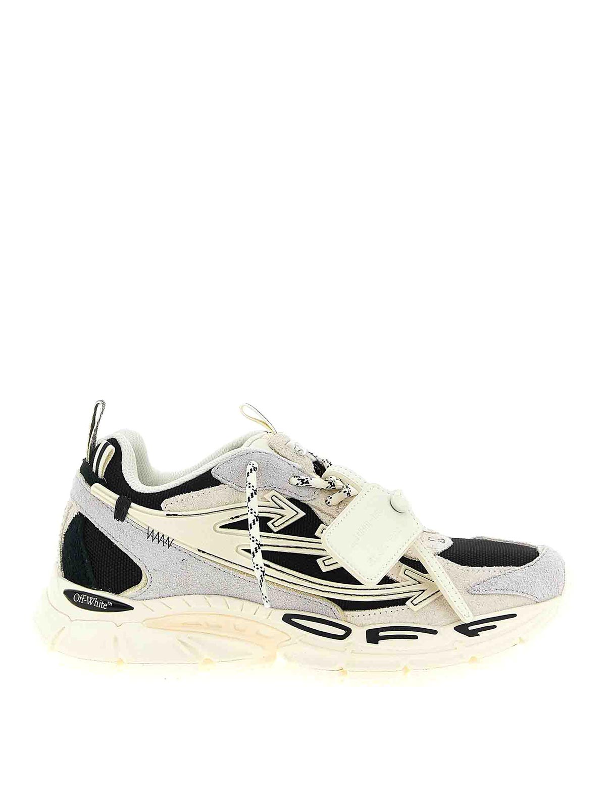「be right back」スニーカーはテクニカルファブリックとスエード製で、取り外し可能なロゴタグ、レースアップクロージャー、ラバーソール。