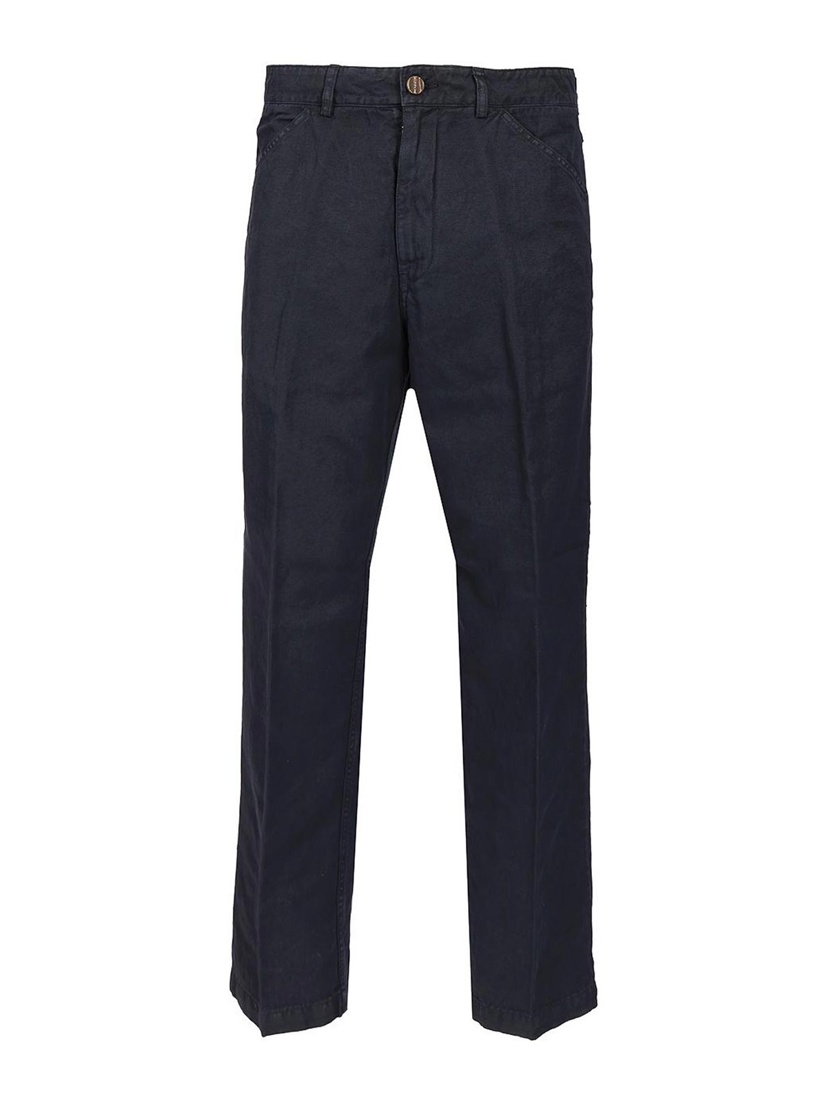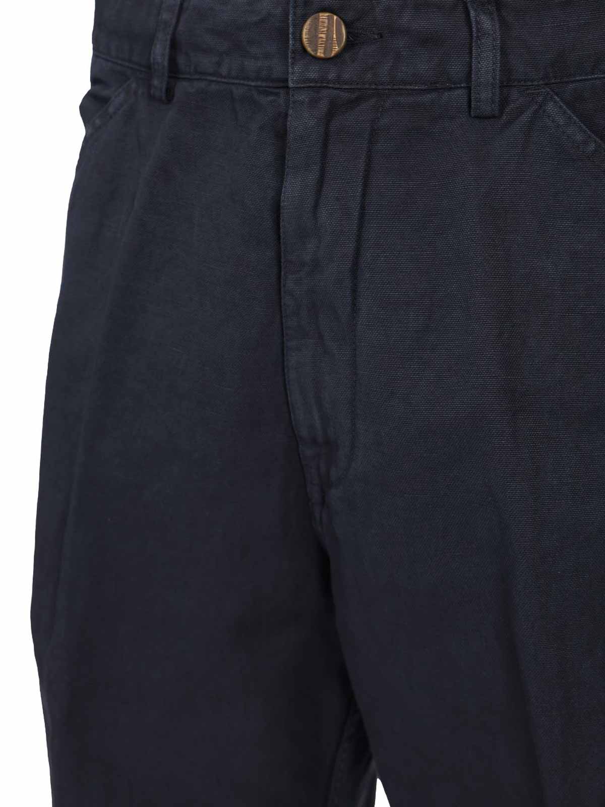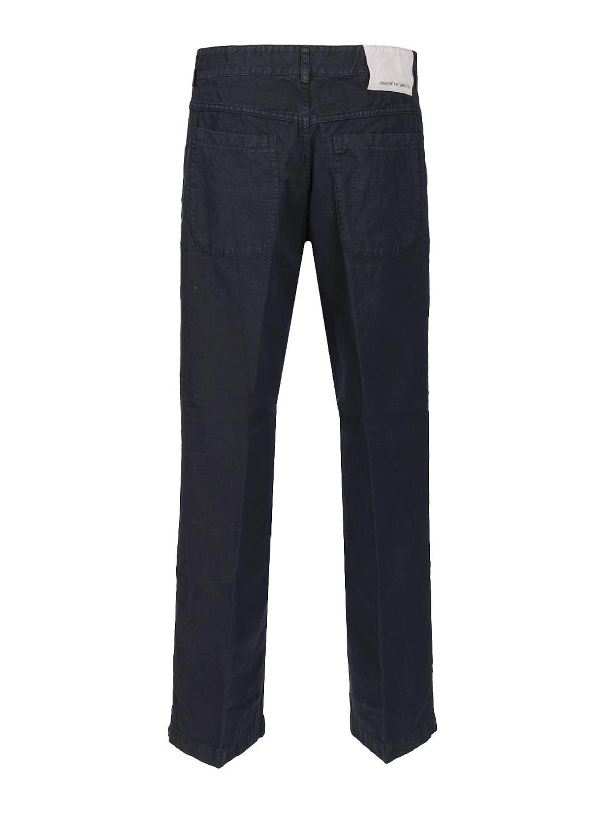オリジナルヴィンテージのコットンとリネンの混紡パンツ。5つのポケット、隠しファスナーとボタン留め、ウエストにベルトループ、サイドにウェルトポケット、パッチバックポケットが付いています。