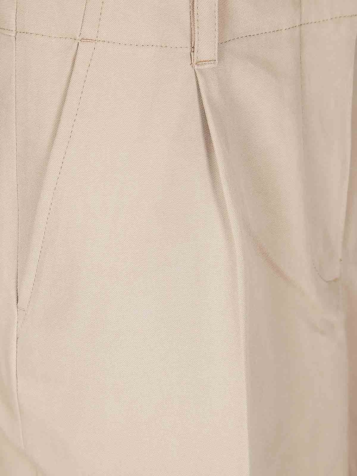 テーラードカット、ほつれたシーム、フロントプリーツ、サイドポケットが付いたジャンボショーツ。