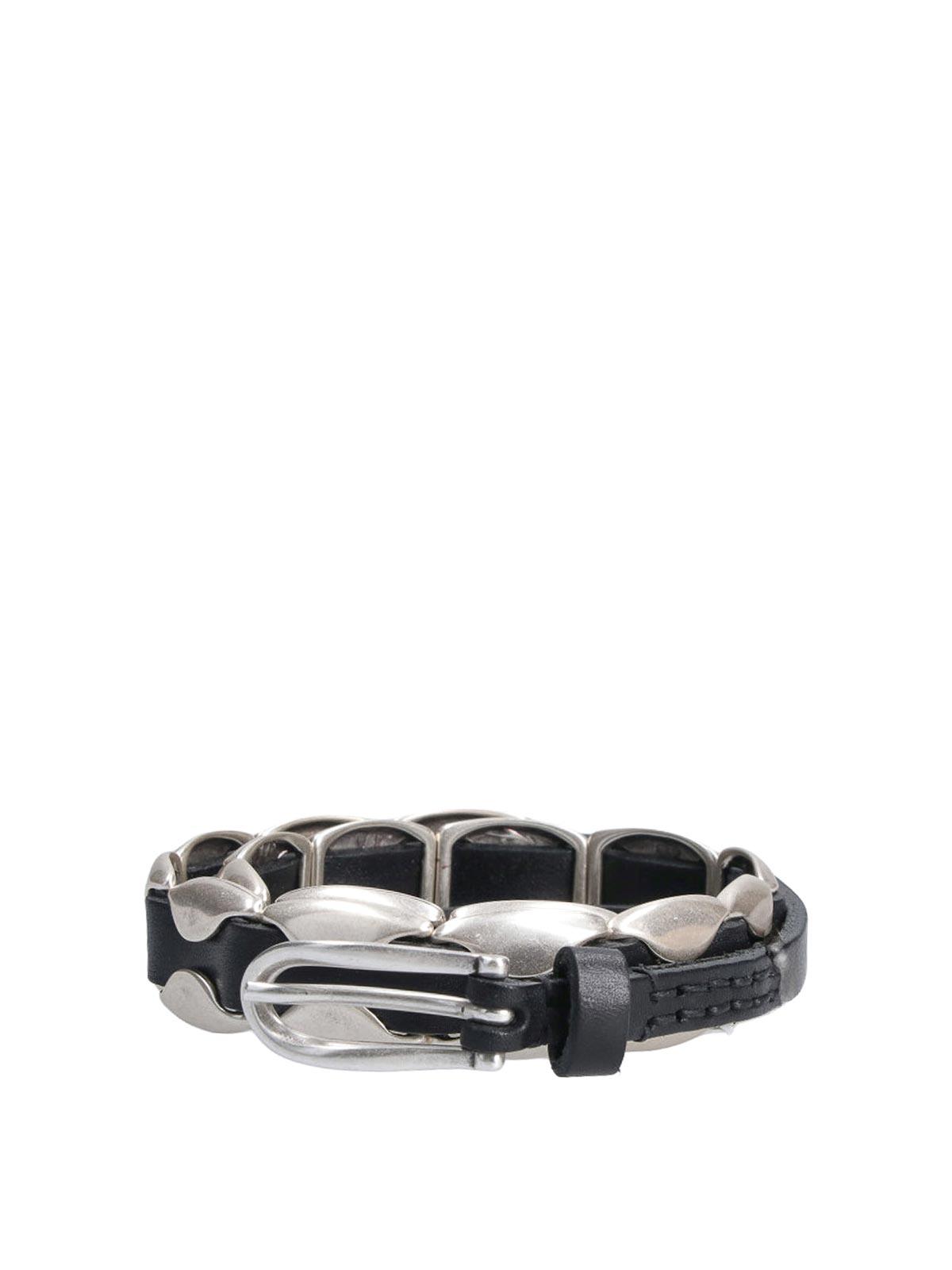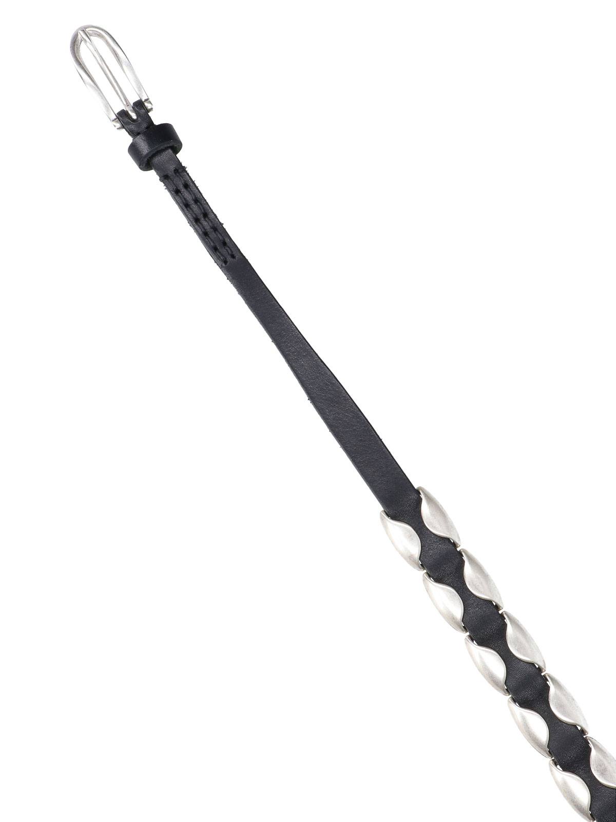 ブラックのカーフスキンを使用したレガシービローベルト。全体にシルバーメタルのディテールが施され、調節可能です。