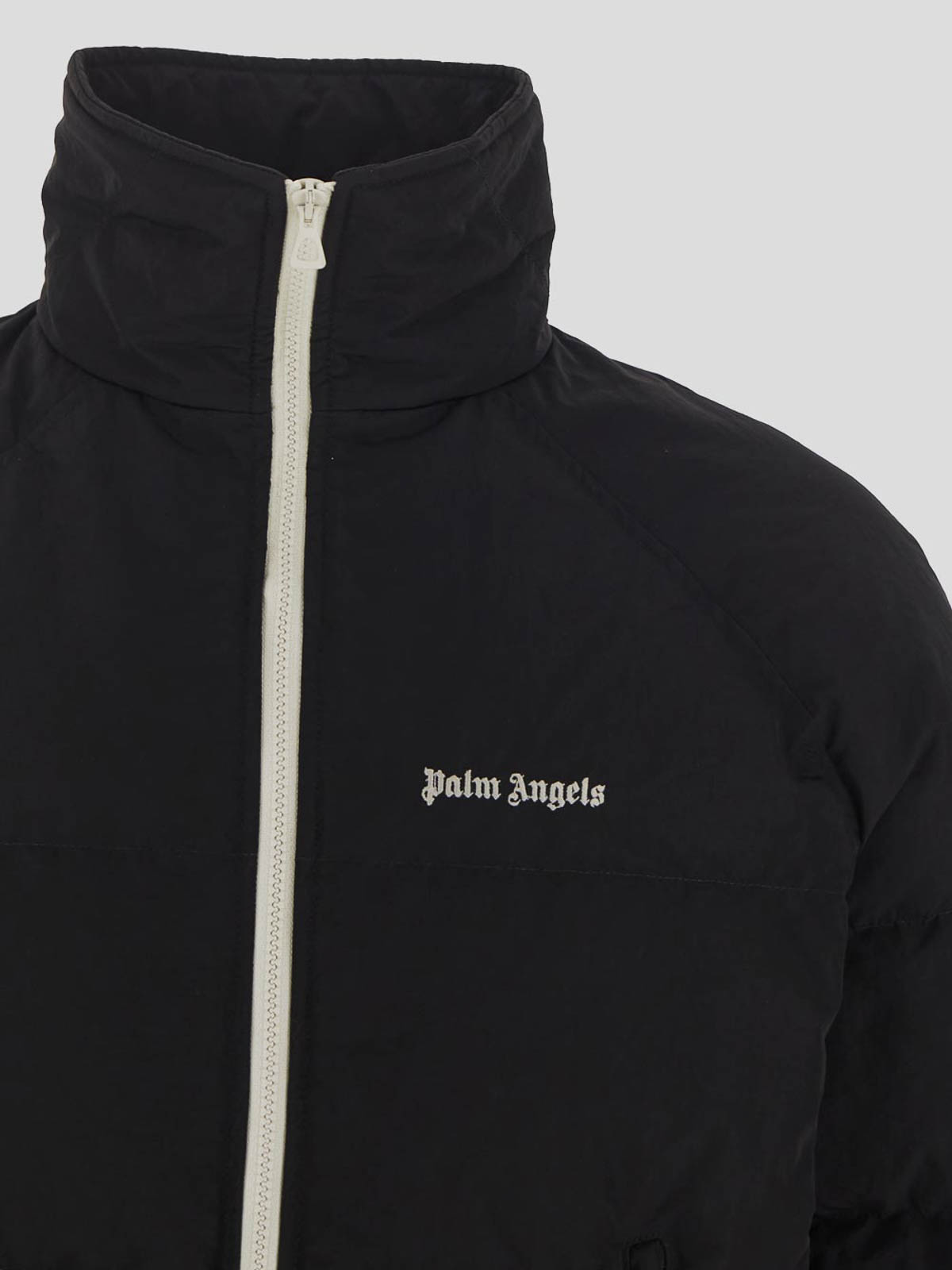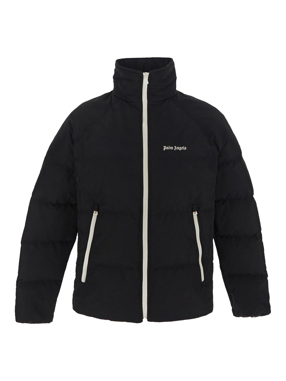 Palm Angels ジャケット、ブラック、胸にオフホワイトのロゴ刺しゅう入り