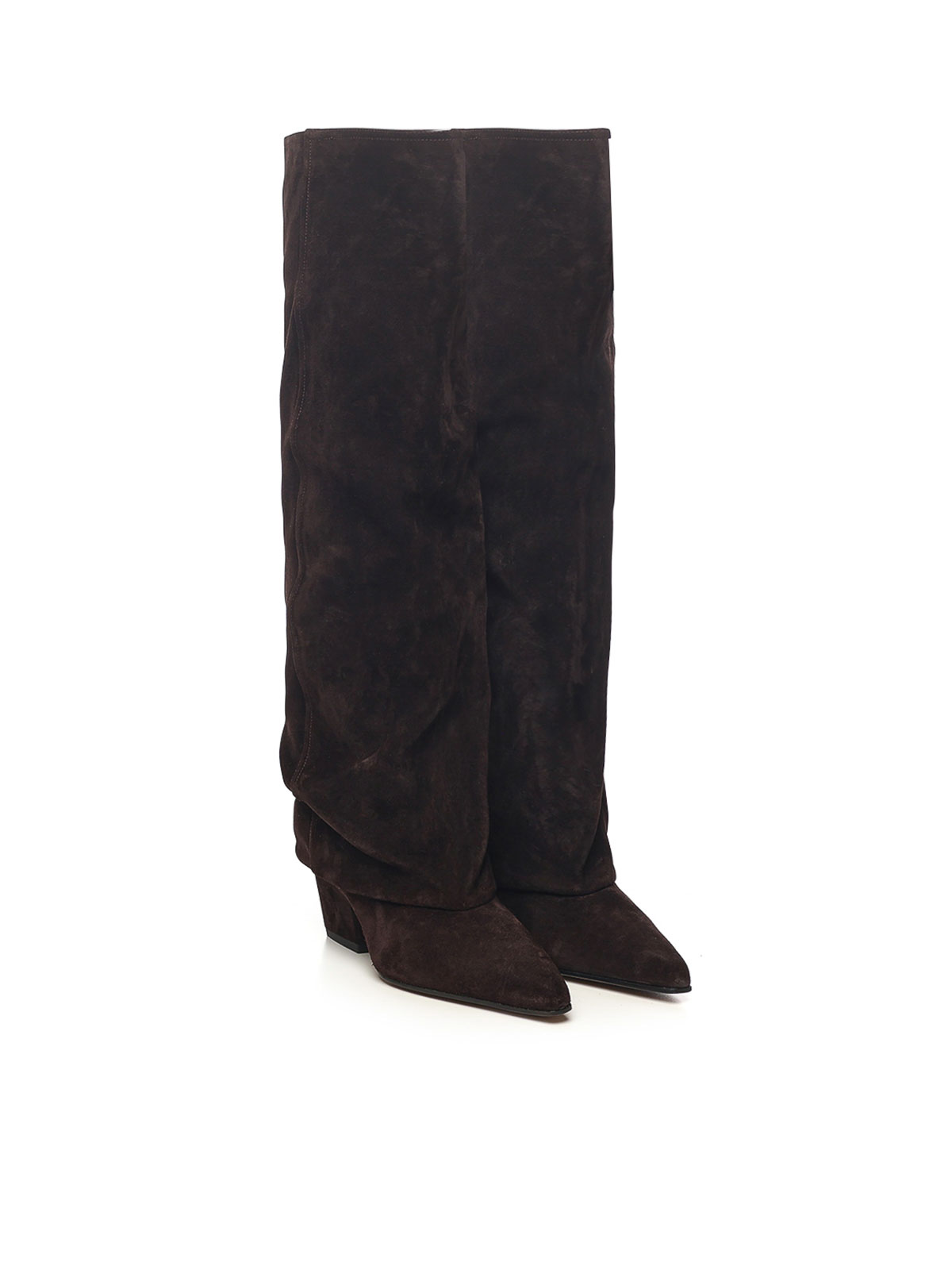 スエードアッパー、スクエアトウ、60mm カウボーイヒール、イタリア製、デザイナーカラー:エボニー