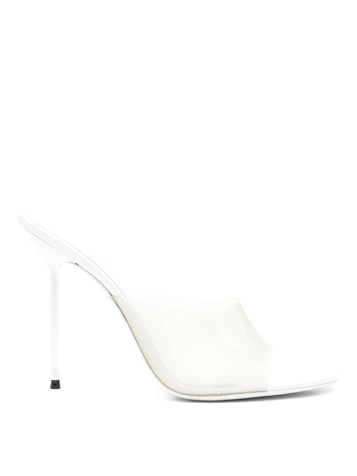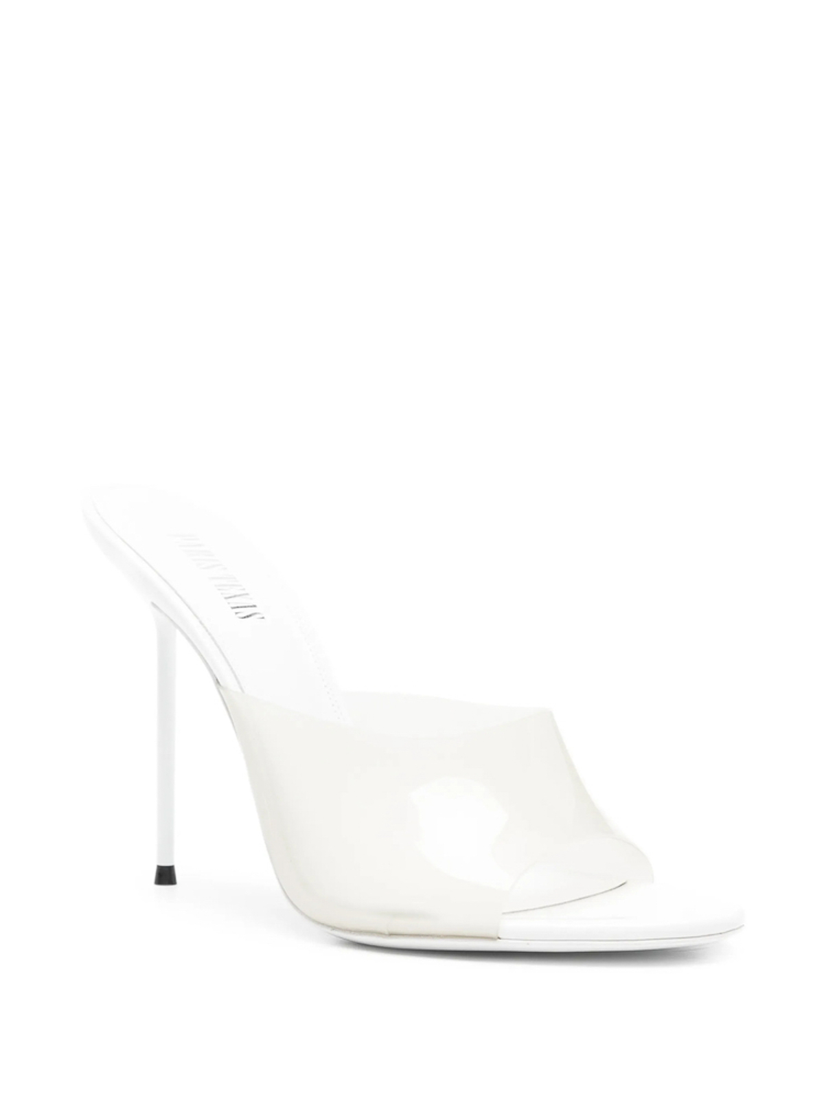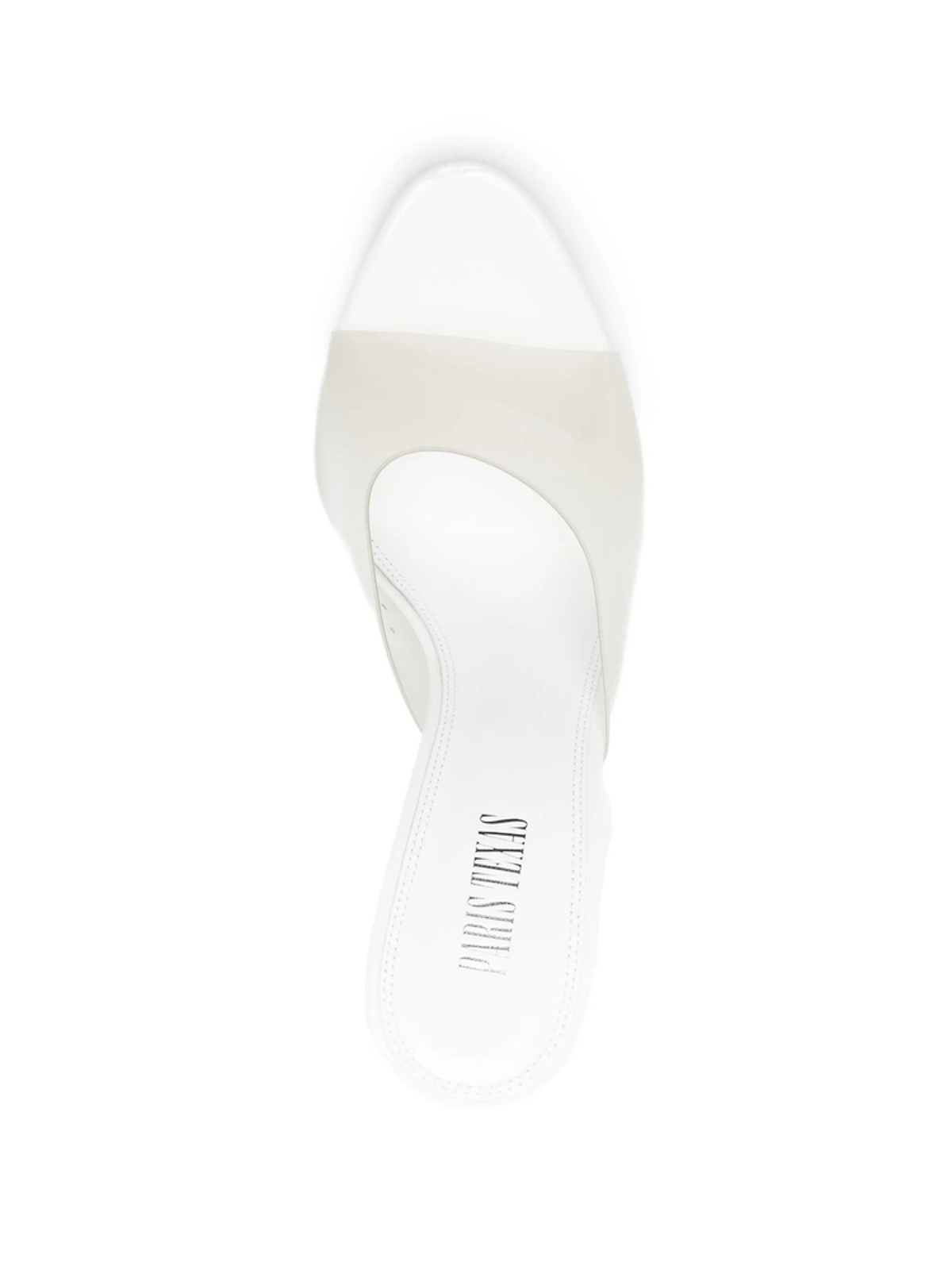 ホワイトスティレットヒールオープントゥのこの作品には、保護用のダストバッグが付いています。