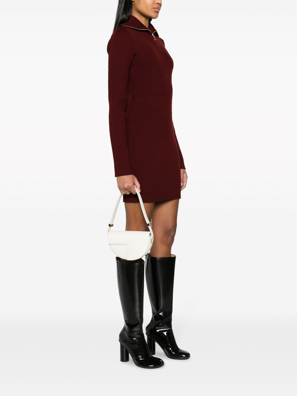 PatouのLe Patouショルダーバッグは、白いカットアウトのディテール、カーブエッジのボディ、フォールドオーバートップクラスプ、シングルショルダーストラップ、ロゴパッチ、仕切られたコンパートメントが特徴です。