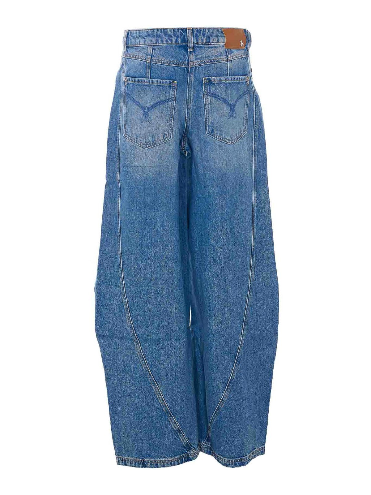 Patrizia pepeデニムジーンズ、ファスナーとボタン留め、ポケット5つ、背面にパッチロゴ、前面にプラークロゴ、バルーンフィット