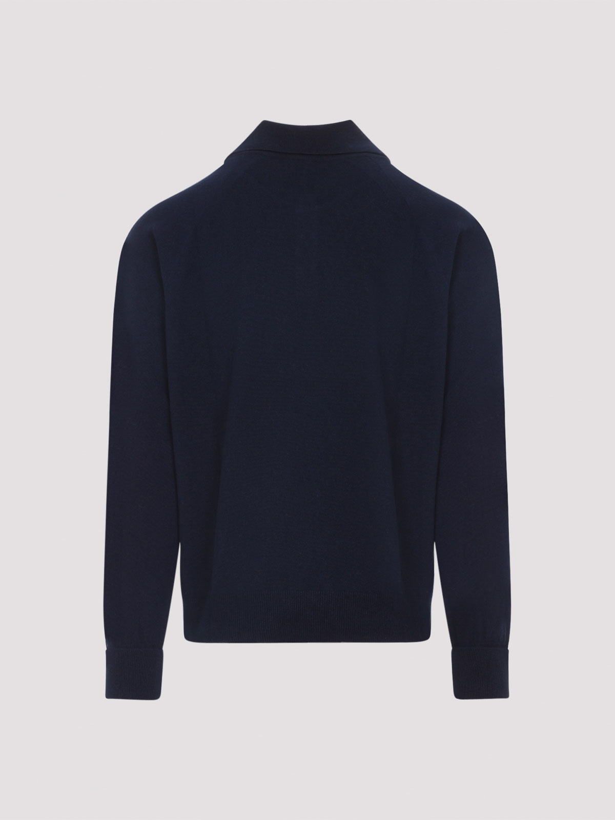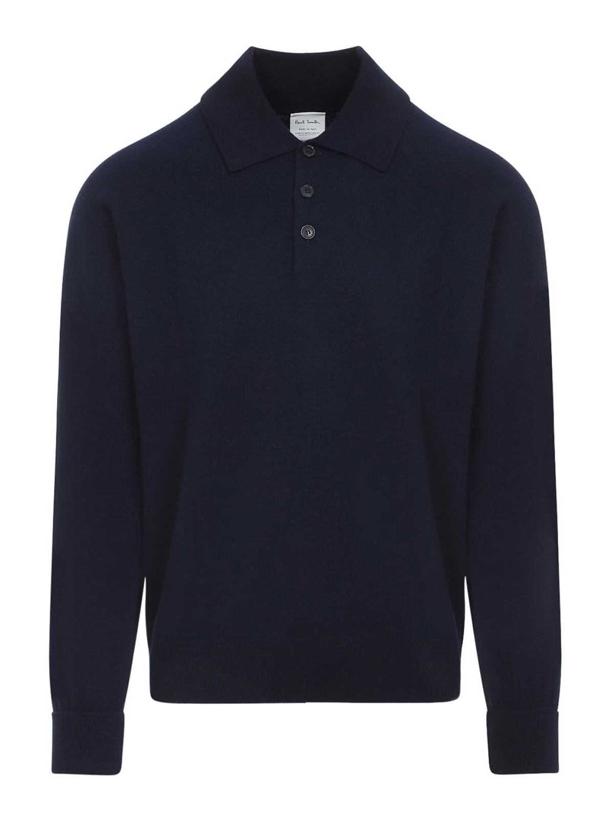 Paul smith LS ネイビーブルーポロシャツネイビーブルーのポロシャツ。襟は3つ、ボタン付き長袖、袖口と裾はリブ編み