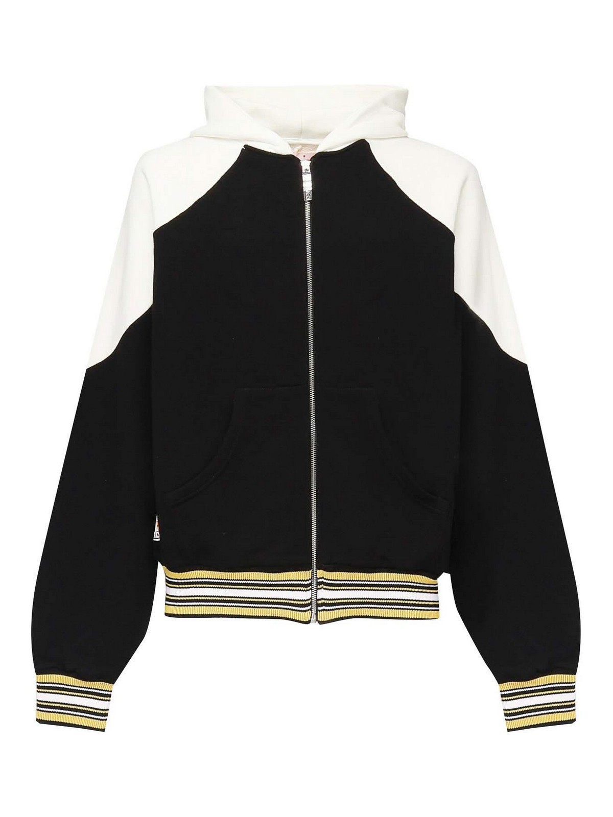 コットン製、フロントジッパー、フード、コントラストトリム、ドロップショルダー、ロングスリーブ、オーバーサイズ、イタリア製、写真のサイズはM、色:黒、白