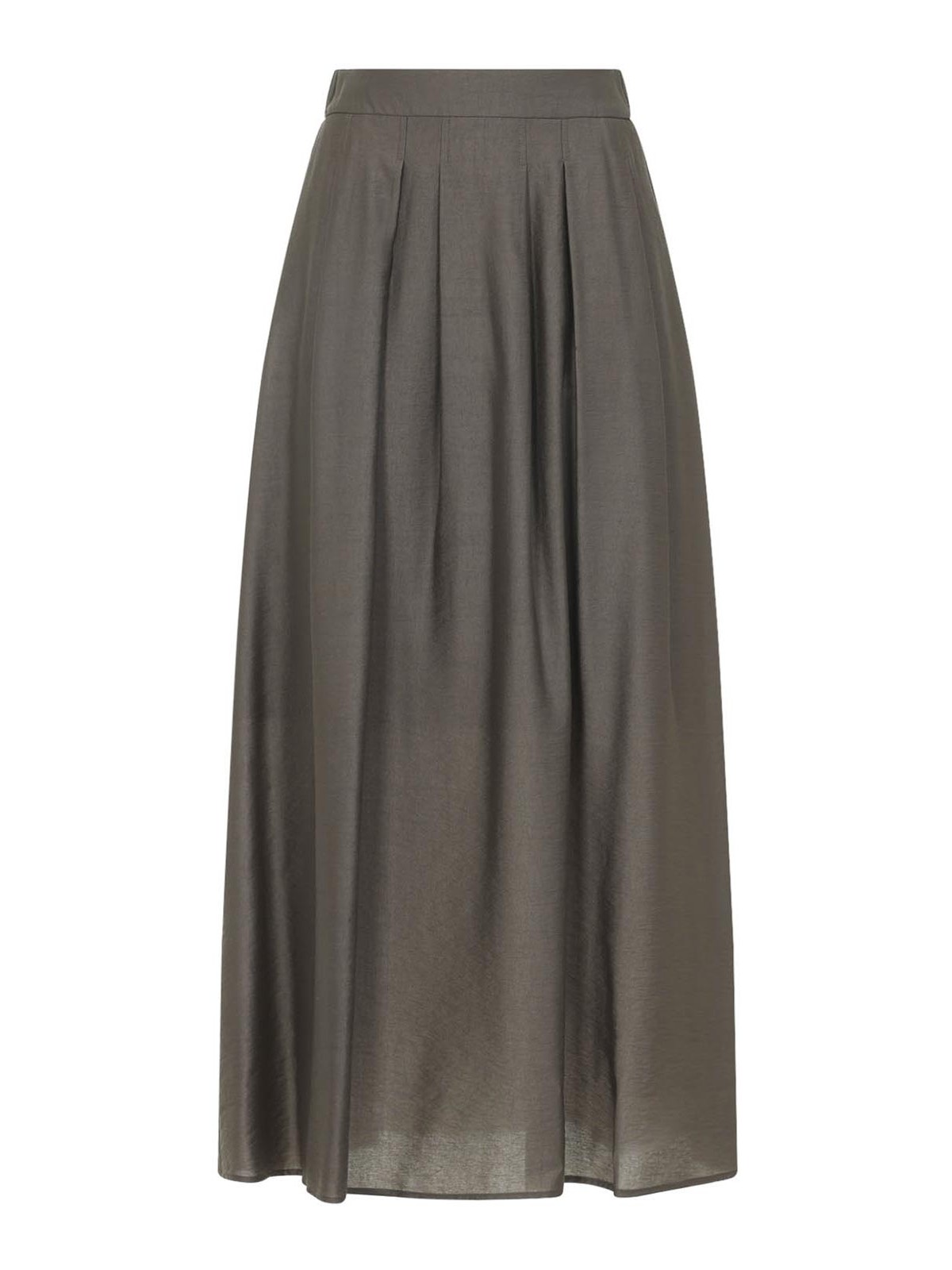 Peserico ブラウンリヨセルミディスカート。茶色のリヨセル生地で作られたプリーツミディスカート。隠しファスナー、伸縮性のあるバックウエストバンド、Aラインのシルエットが特徴です。