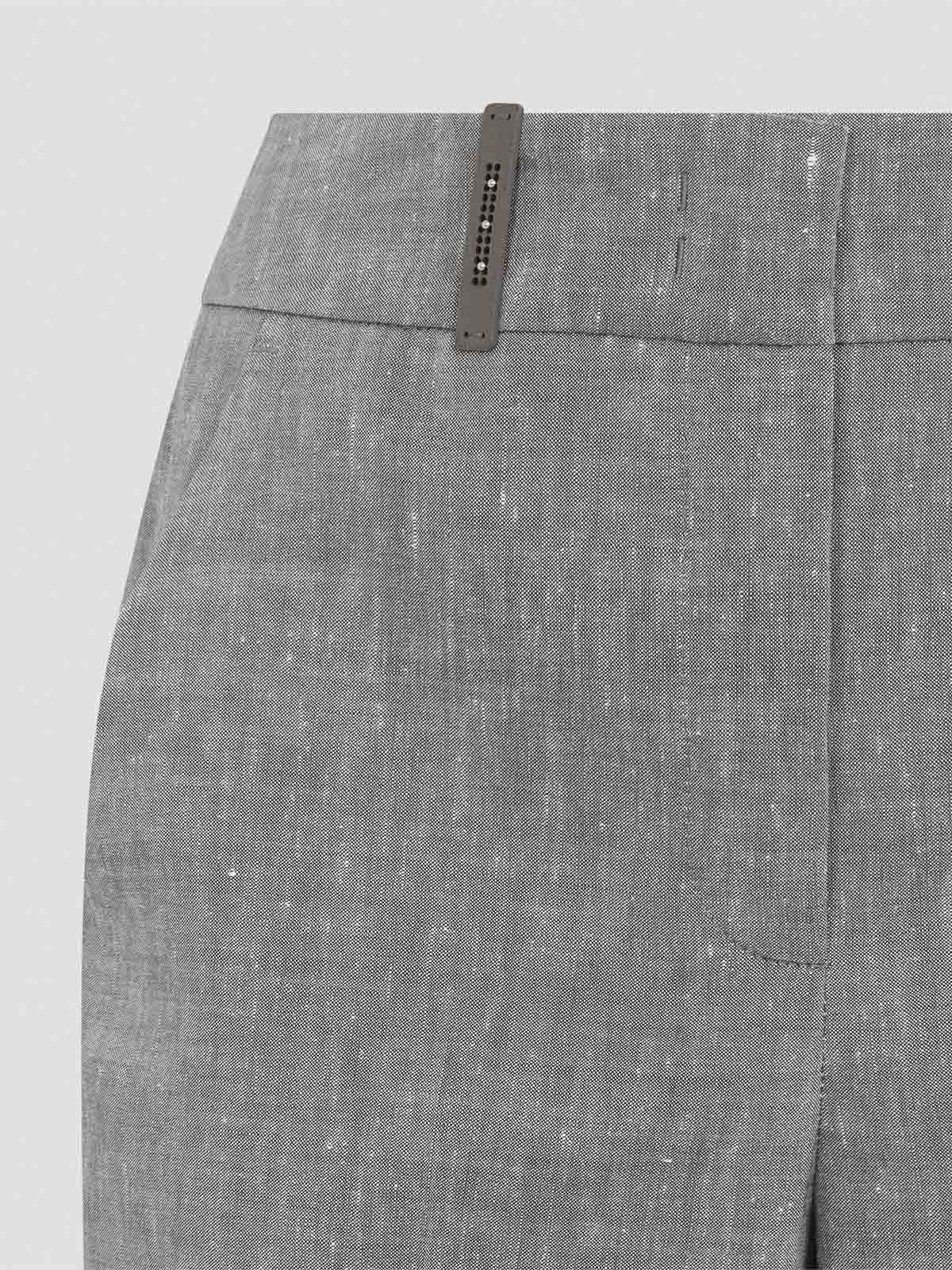 Pesericoブラウンのリネンとウールのパンツ。ブラウンのリネンとウールのミランジブレンドで作られており、ミッドライズウエスト、隠しフロントファスナー、ベルトループ、スラントポケット、背面に2つのウェルトポケット、ストレートレッグが特徴です。