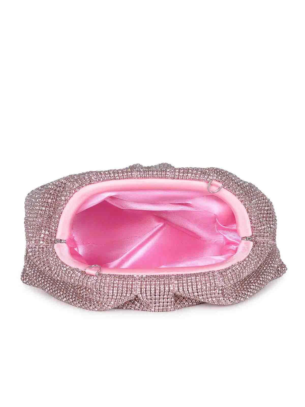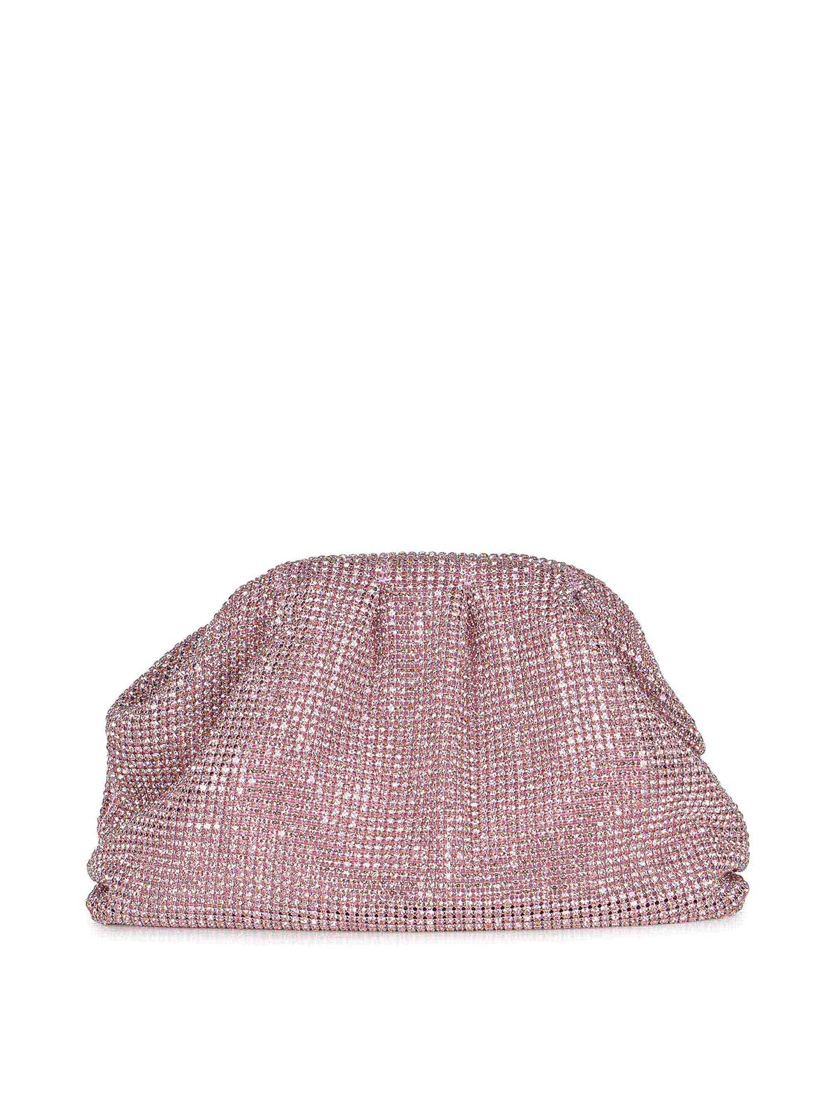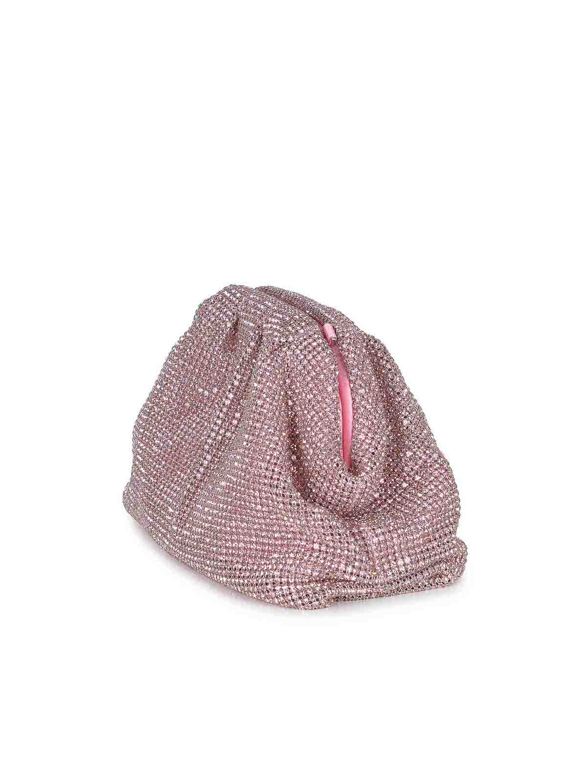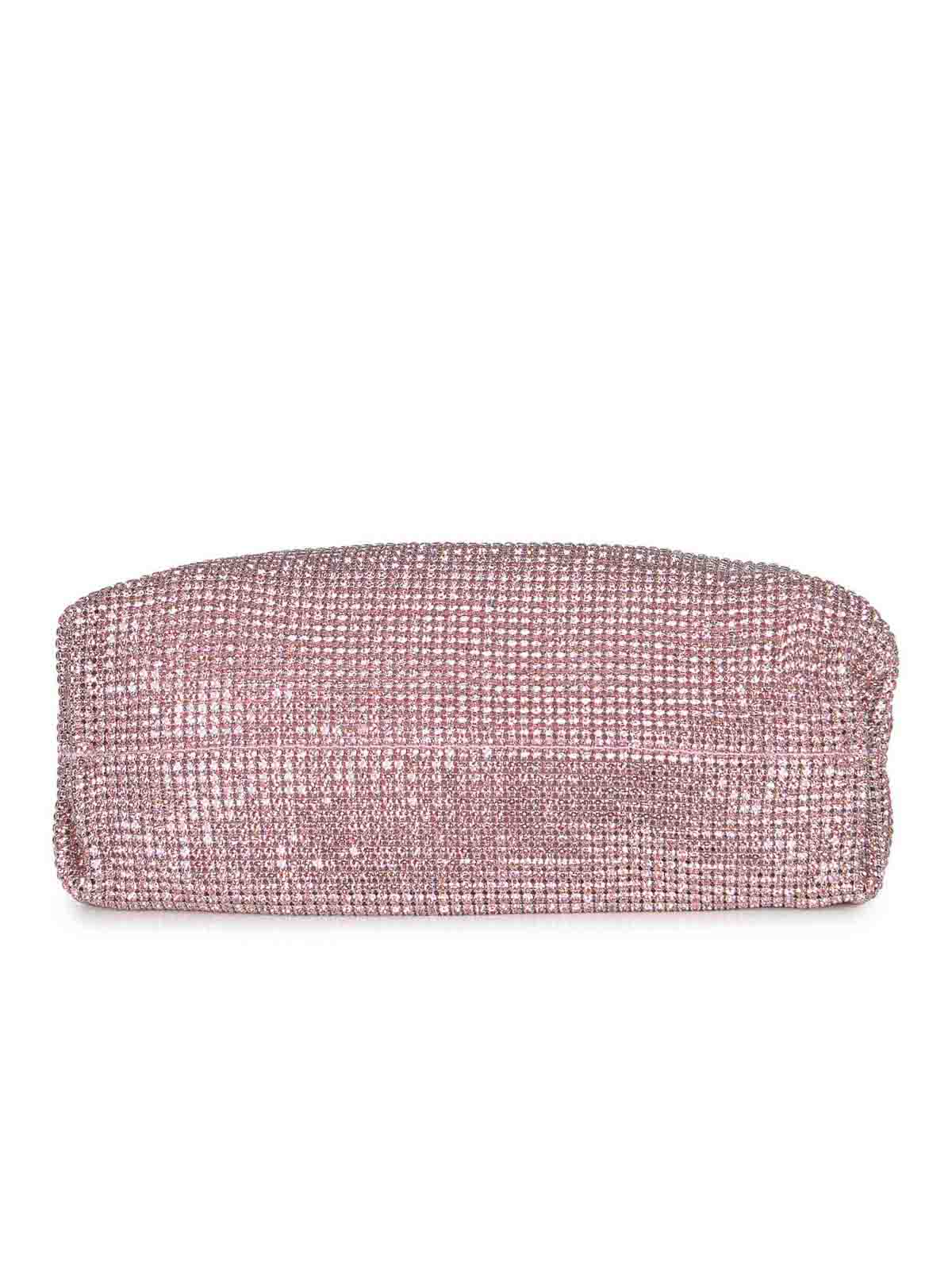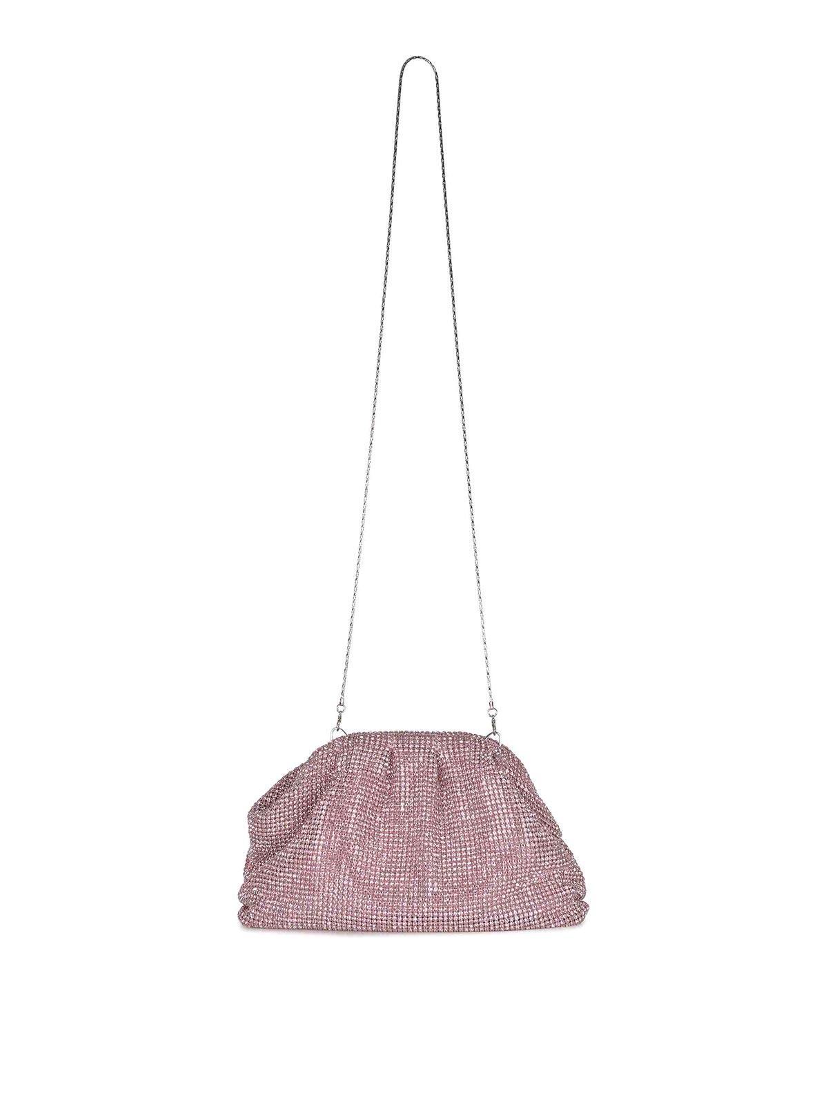 クラッチトゥエンティフォーハイチペトラはピンクのラインストーン生地製、ドレープ、マグネットクロージャー、内側はフクシアサテン、取り外し可能なショルダーストラップ、内壁ポケット、メタルロゴプラーク、奥行き14cm 幅22cm 高さ10cm 100%ラインストーン