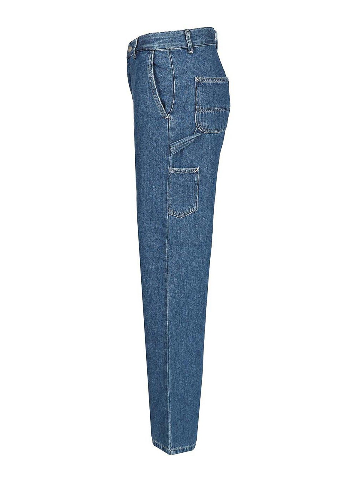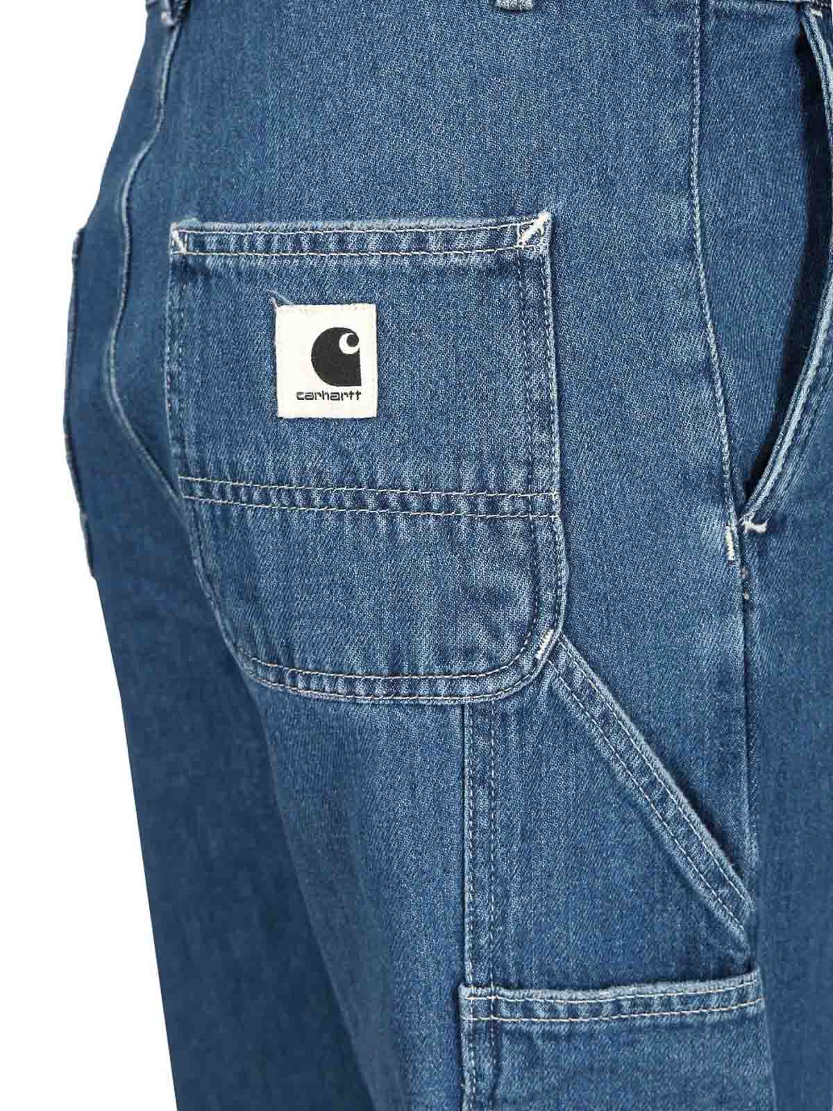 Carhartt wip レディースピアスストレートジーンズデニム製、コントラストステッチ、ツールポケット、ハンマーループ、ジップフライ、スクエアラベル付き