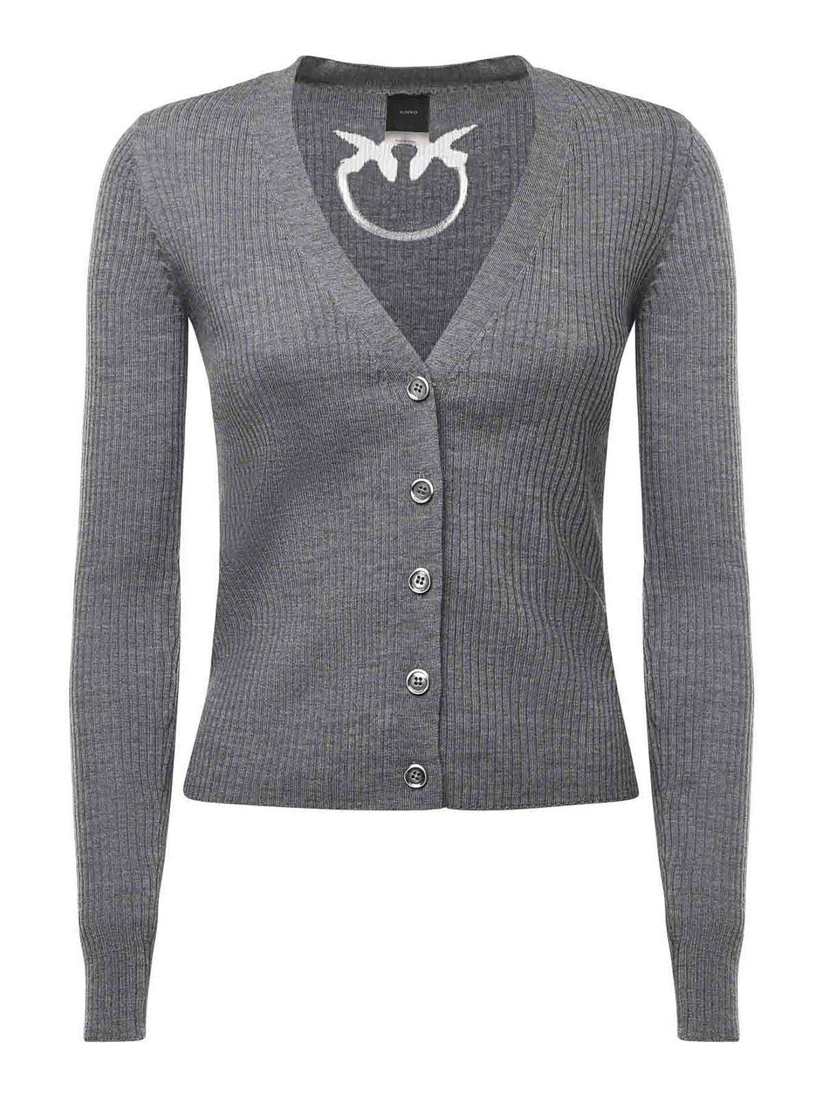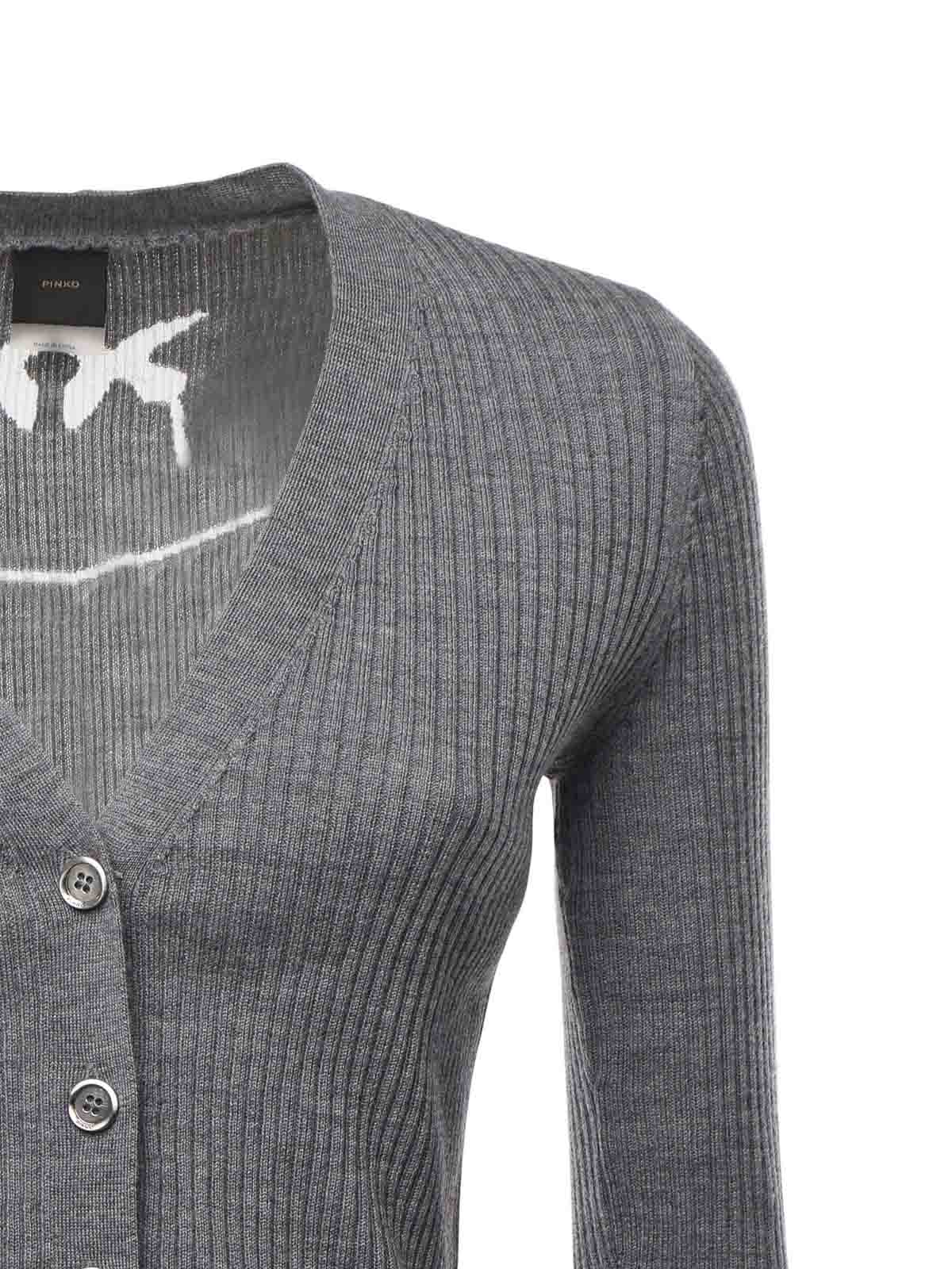 ピュアメリノウール製、Vネック、フロントボタン留め、ロングスリーブ、写真のサイズはXS、色:グレー