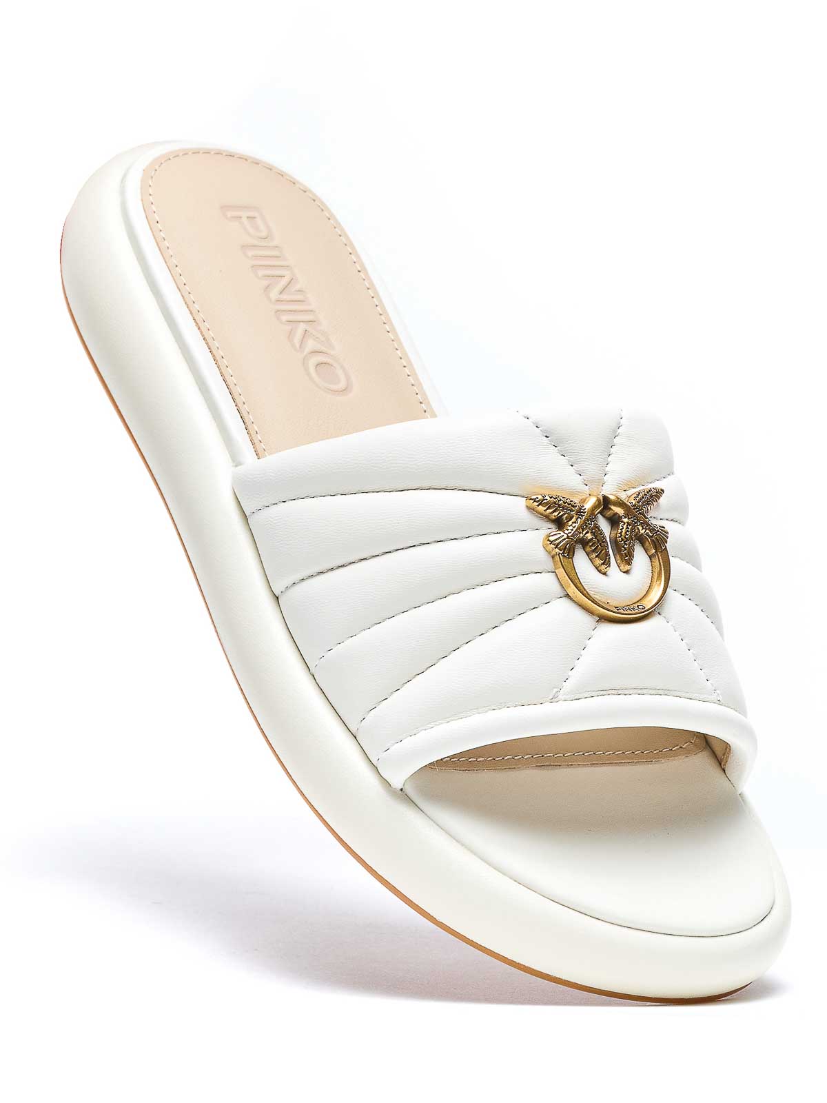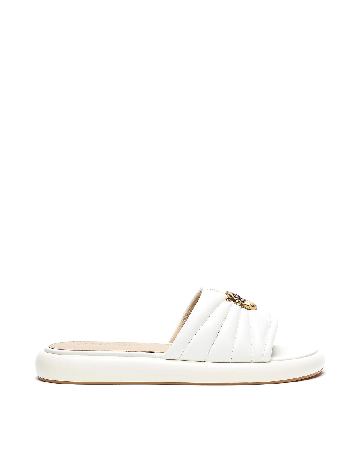 Pinko ミルクフィオナサンダル、ラウンドトゥ、正面ゴールドロゴ、レザーアッパー