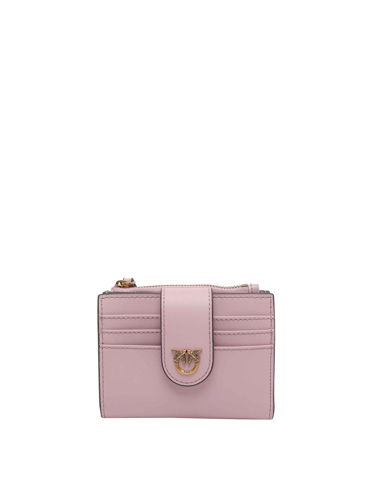 Pinko ピンクスモールラブバードウォレット、クリップクロージャー、インナースロット6、ノートセクション、スロット3、正面ロゴ