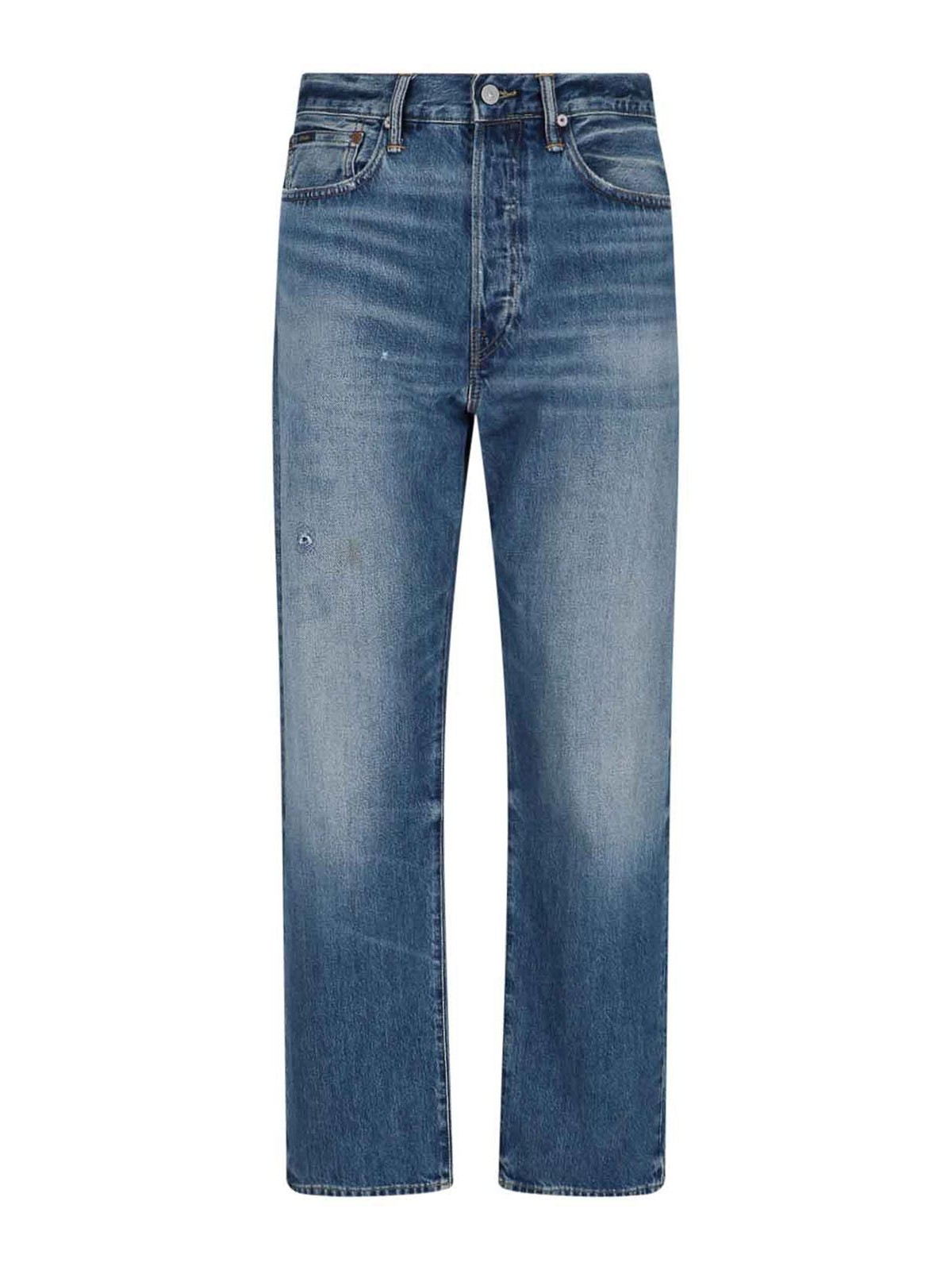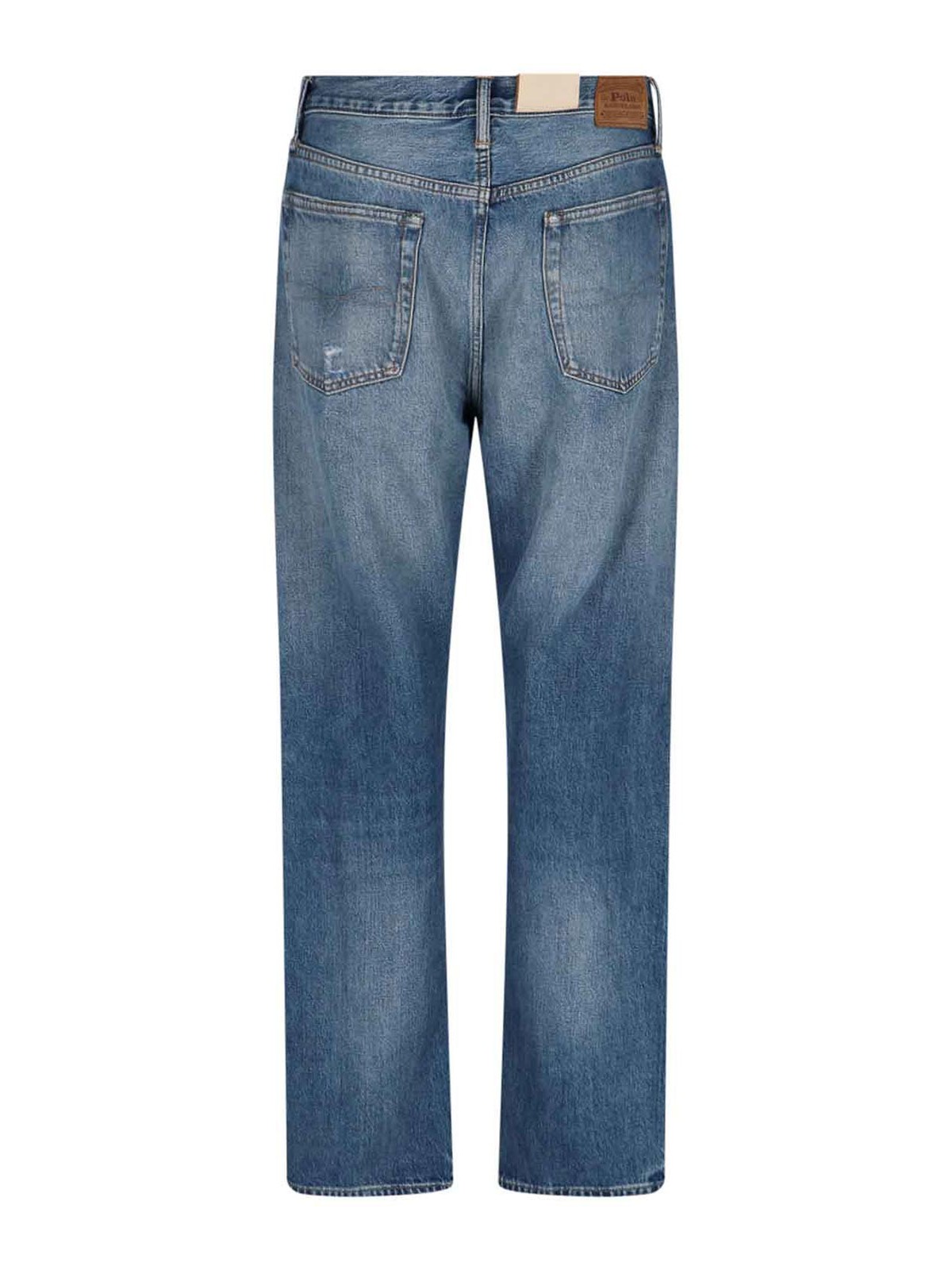 ストレートジーンズポール、ラルフローレン、デニムブルー USTorDyed right オールオーバーライフメディア通行人用ボタンベルトとジッパーデザイン、ポケット5つまたはラベルロゴパッチ、レッドローンロゴ