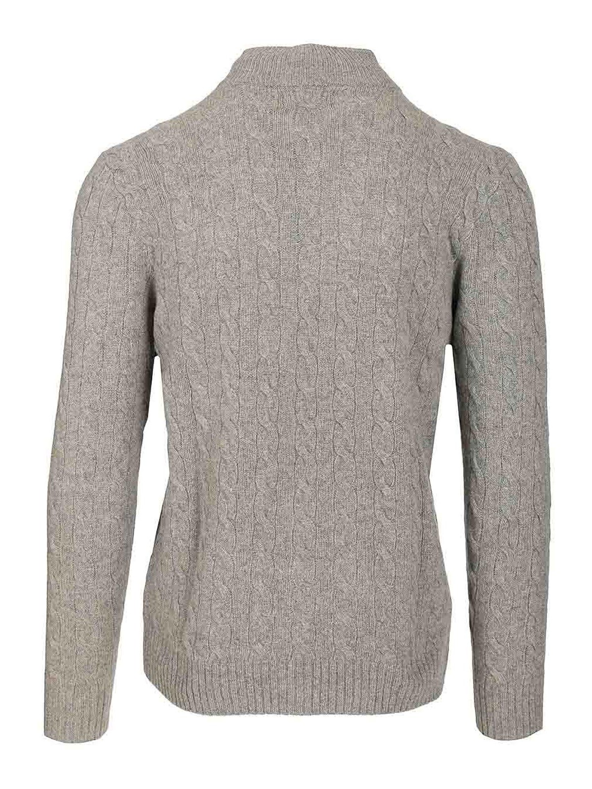 Polo Ralph Lauren ハーフジップカシミヤ&ウールセーター、ケーブルニット、リブ編みの襟、裾、袖口、胸にポニーの刺繍入り