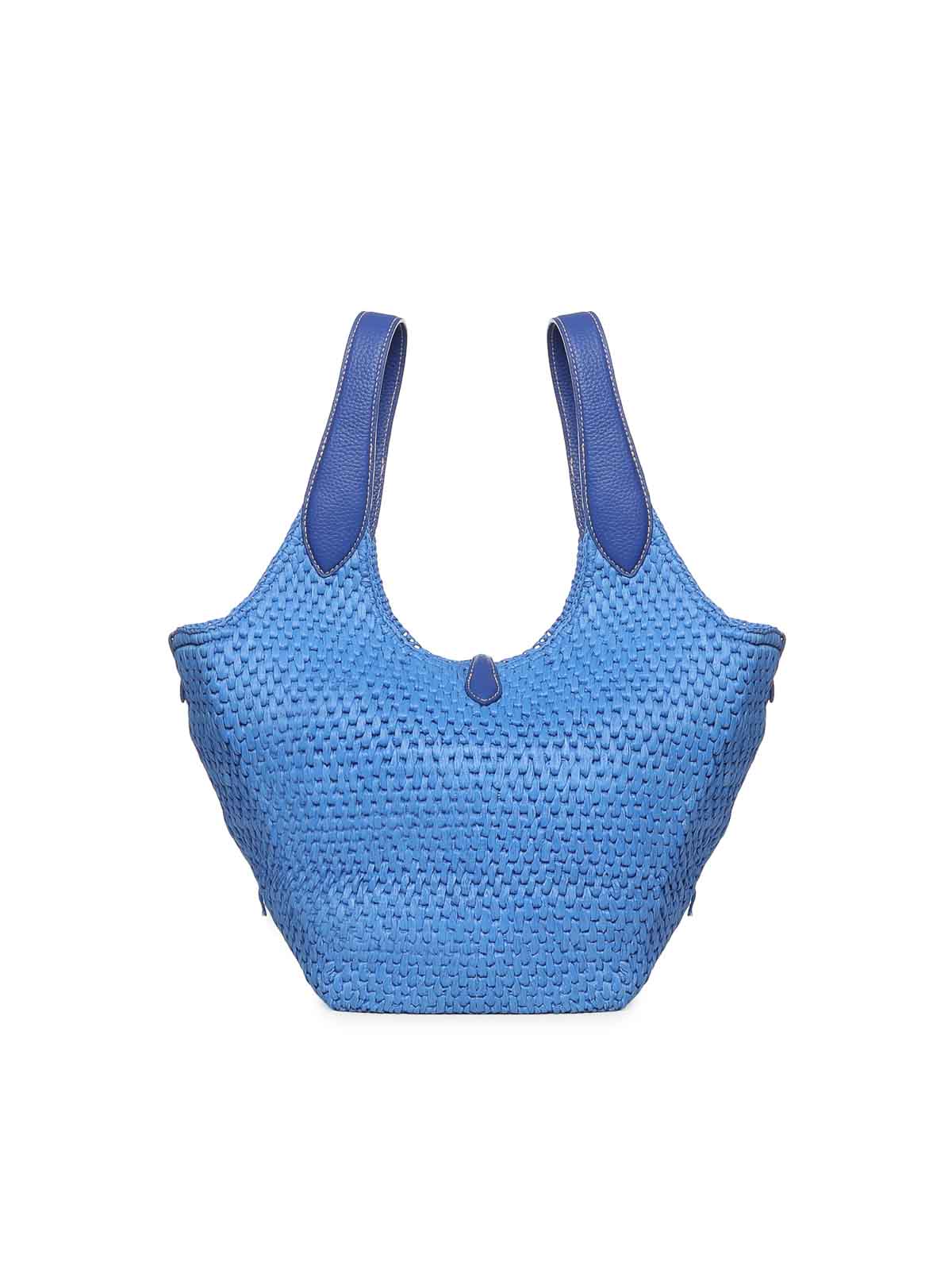 ビスコースとラフィア製、スナップクロージャー、トップハンドル、ロゴ刺繍、寸法:40 x 28 x 18 cm、デザイナーカラー:パープル