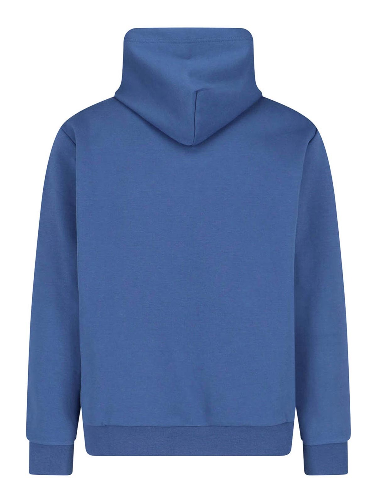 ブルーコットン混紡のポロラルフローレンフーディー、ドローストリング、長袖、前面にコントラストの効いたロゴ、マキシフロントポケット1つ、リブ仕上げ、ストレートヘム。