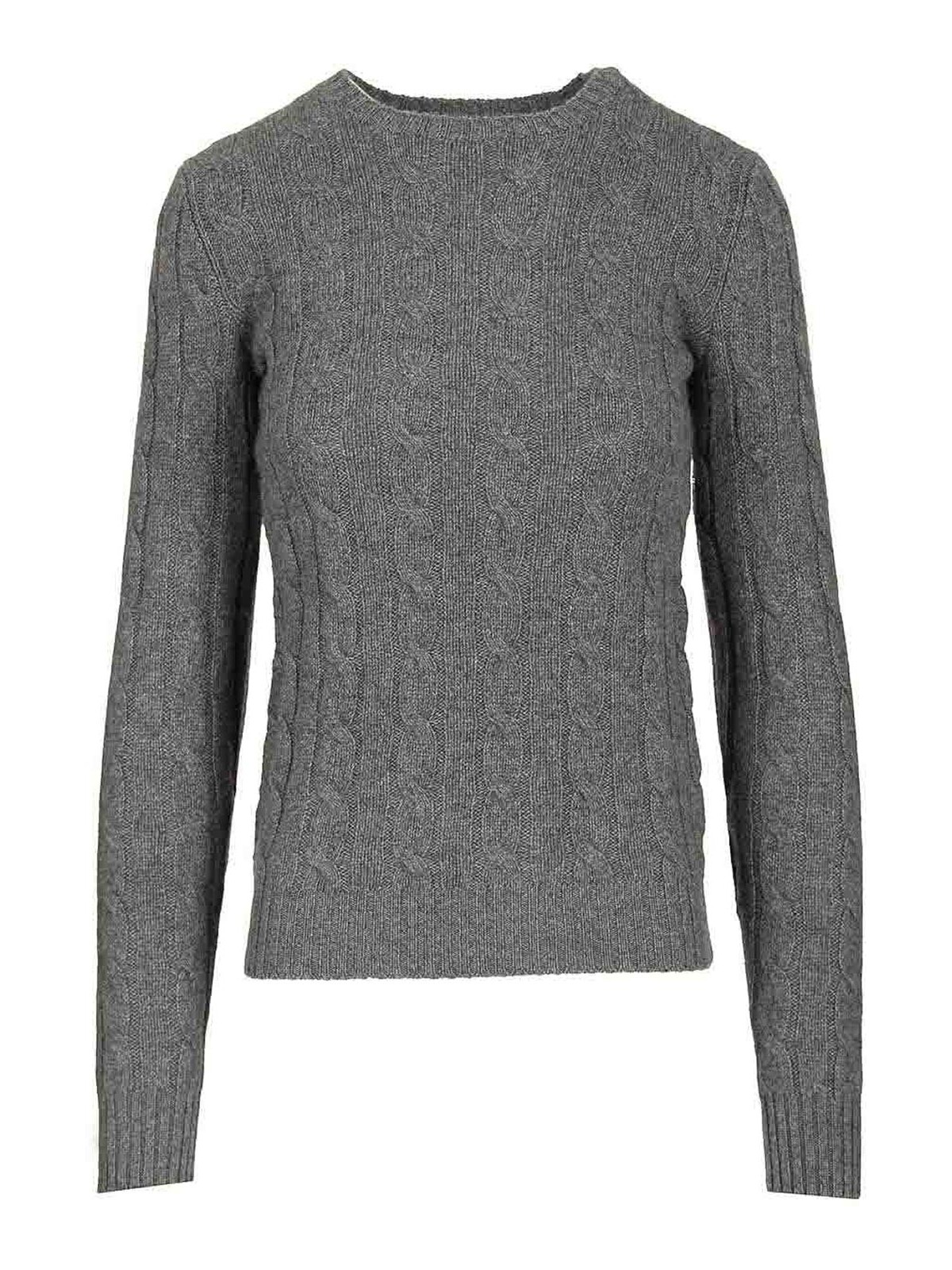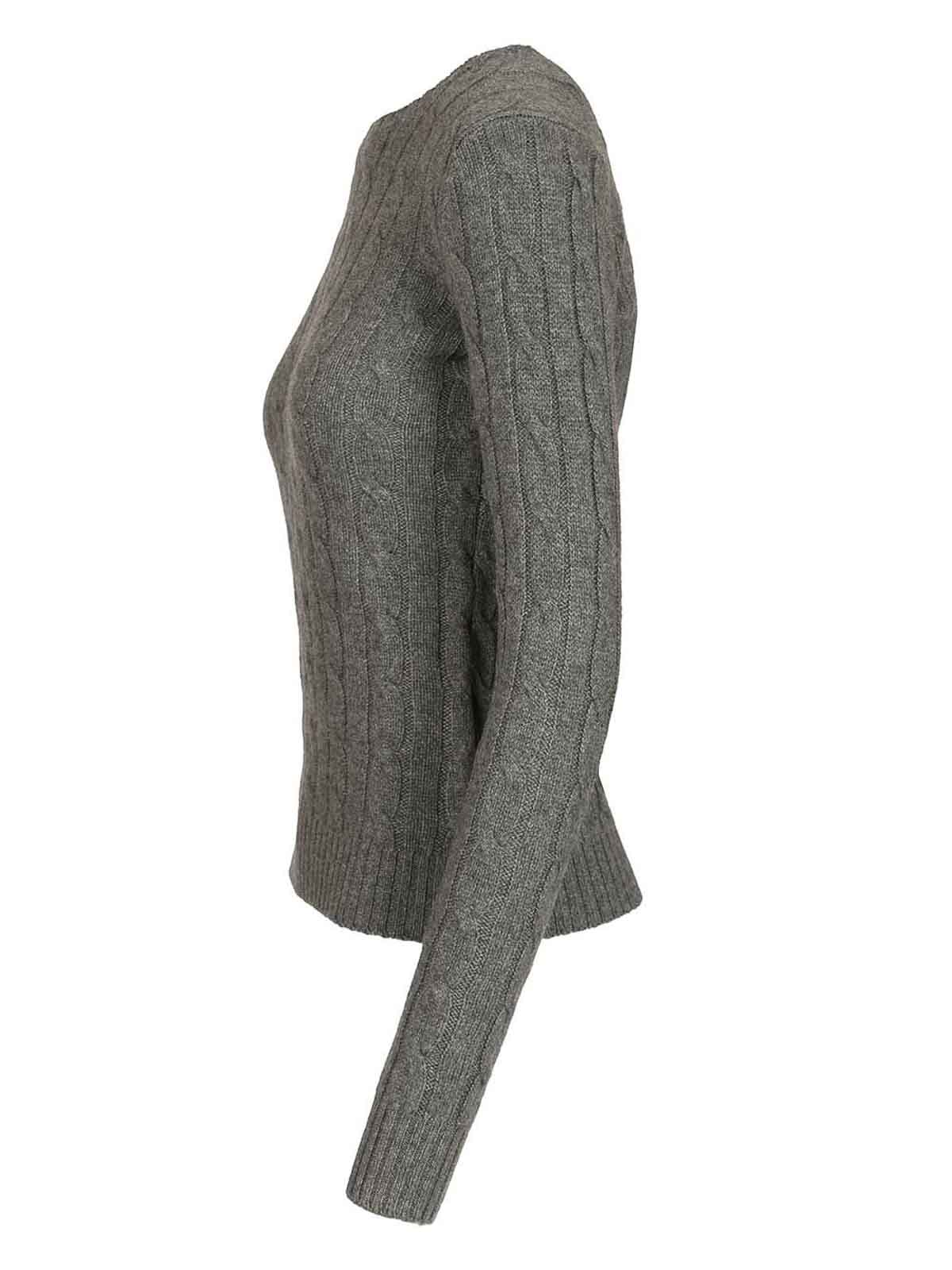 袖口とボトムがリブ編みのカシミヤケーブルニットセーター