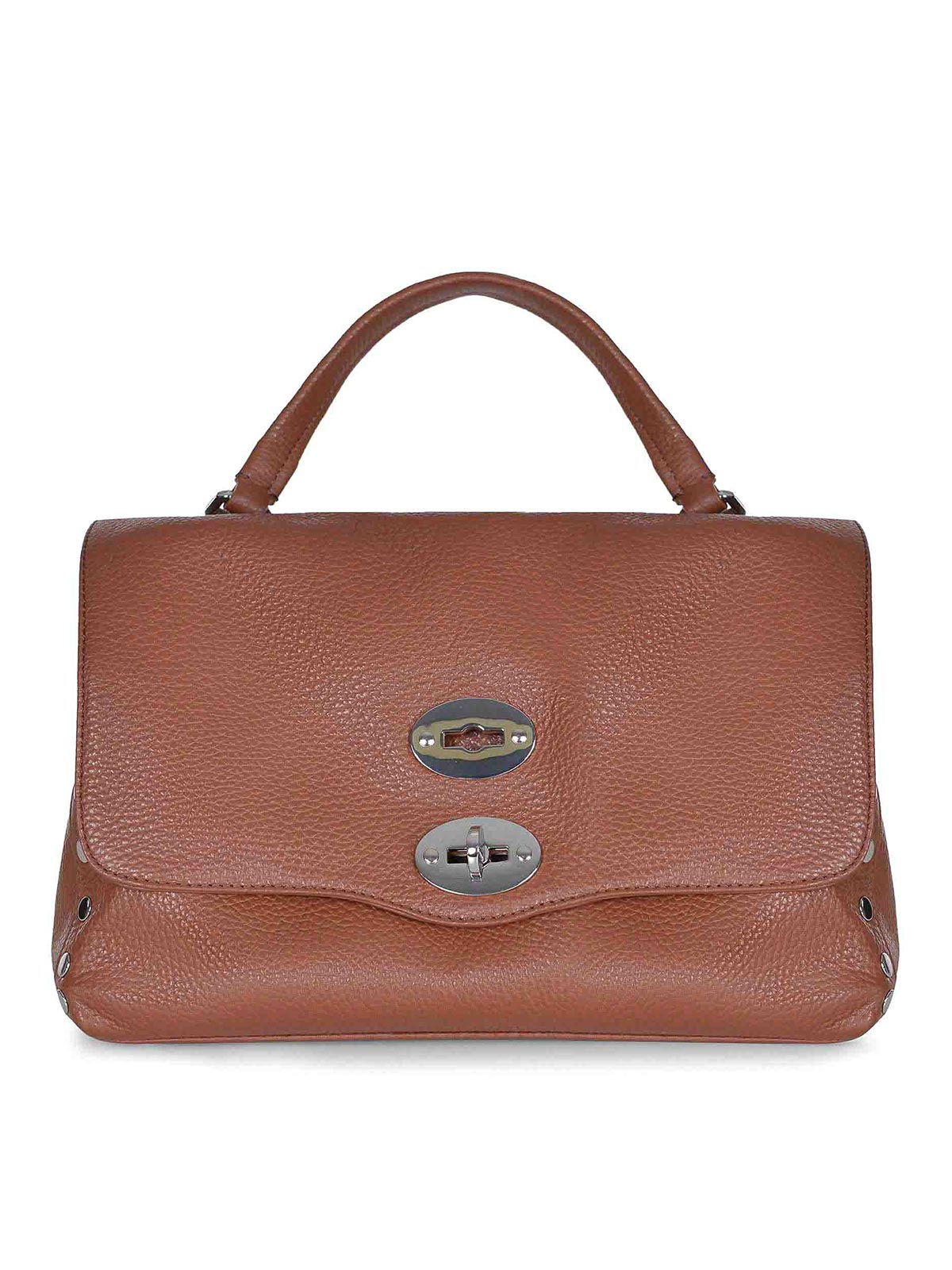 レザーカラーのハンマーレザー製のZanellato postina デイリーバッグ。シルバーのメタルインサート。サイドにスタッズのディテール。トップハンドル。クロージャー付きフラップ、メタルターンロック。裏地付き。内側にレザーロゴパッチ。ジッパー付きの内側のウォールポケット。ダブルコンパートメント。手で着用したり、肩にかけたり、クロスボディとしても着用できます。調節可能で取り外し可能なレザーショルダーストラップ。ダブルファブリックストラップ、マルチカラー。寸法:高さ20cm、幅29cm、奥行き15cm、ハンドル11cm。100% レザー。イタリア製。