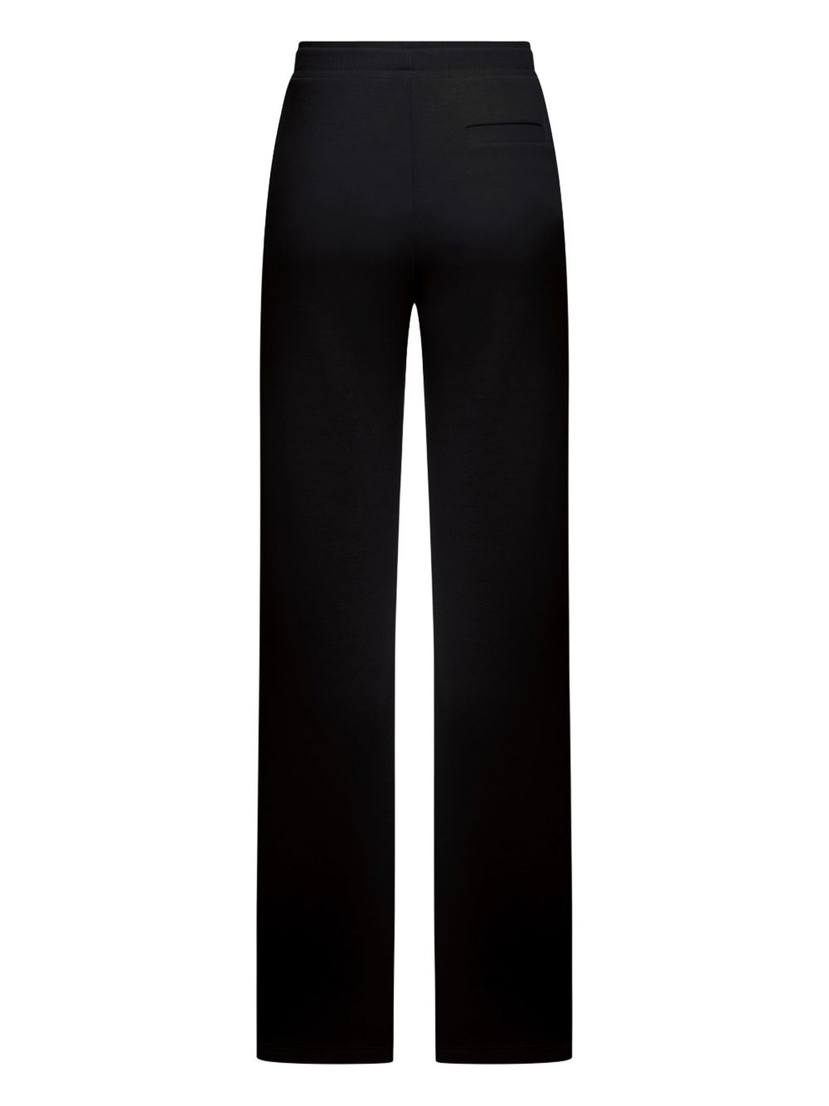 コットンジャージーパンツ、ストレートフィット、伸縮性のあるドローストリング、ウエストインセット、サイドポケット、背面にウェルトポケット、右側に着用したロゴテープカラー:ブラック