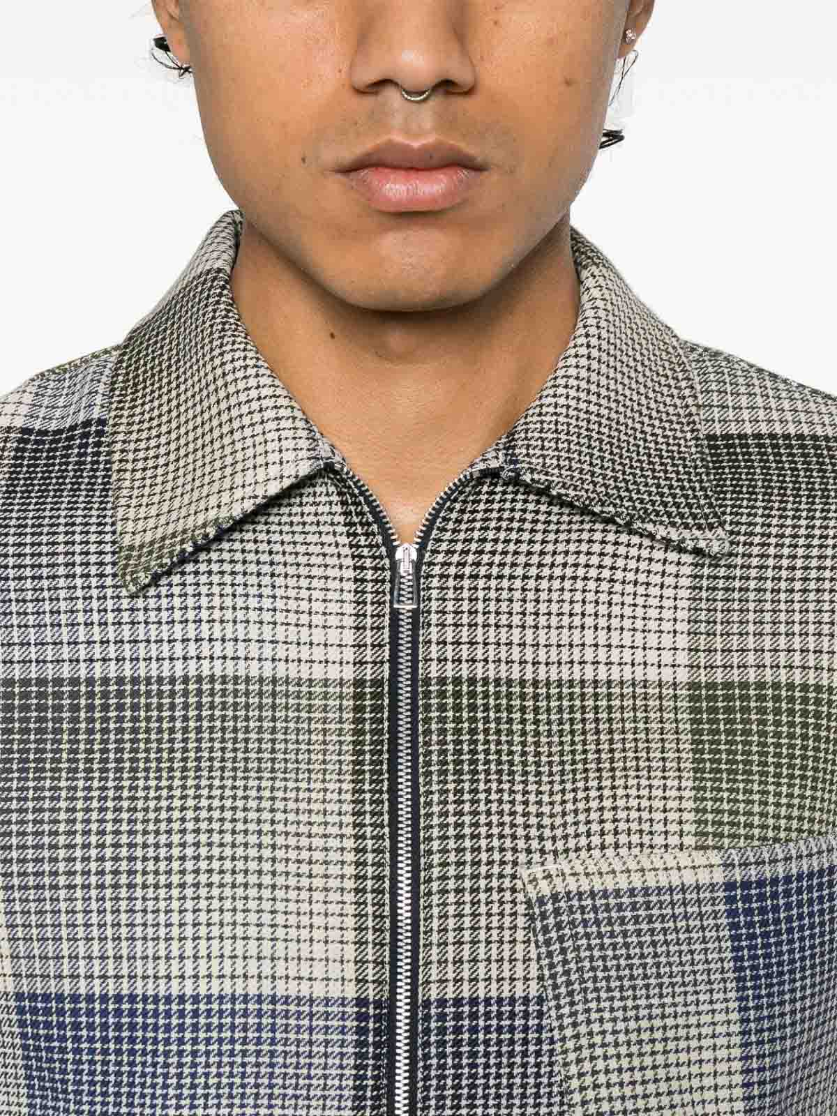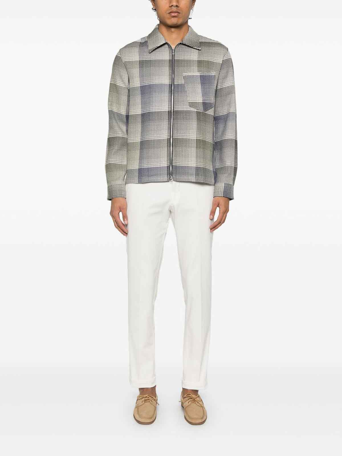 エクリュフロントツーウェイファスナー胸パッチポケットボタン付きカフスロングスリーブ