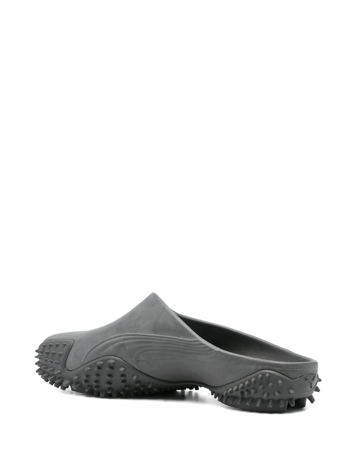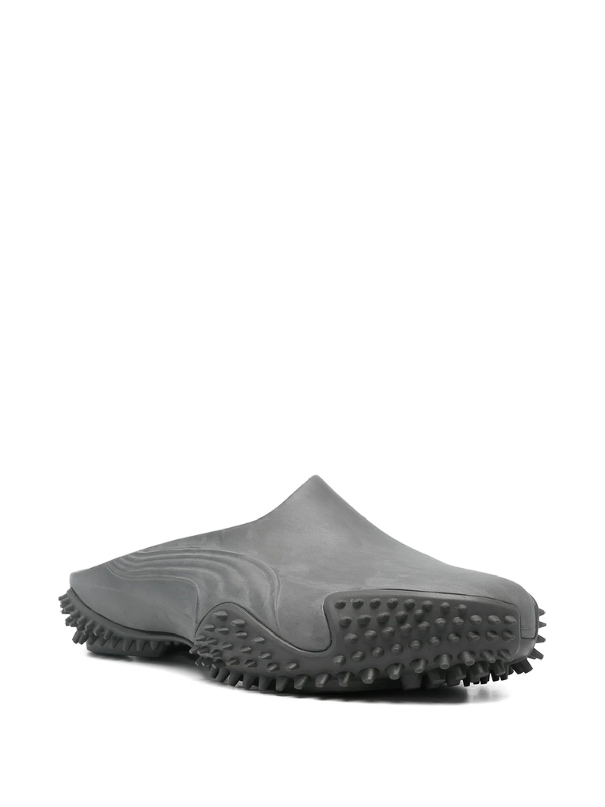 グレーのスリッポンデザイン立体スタッズ付きカーブトゥフラット