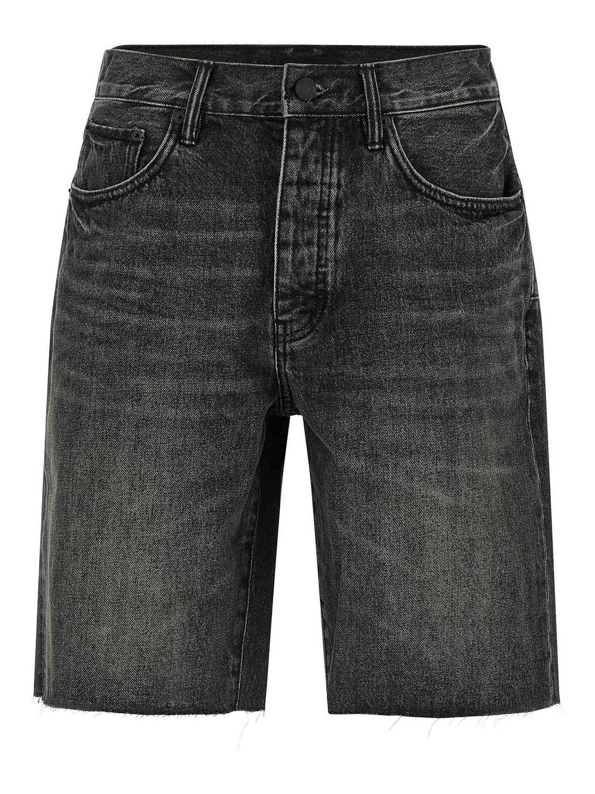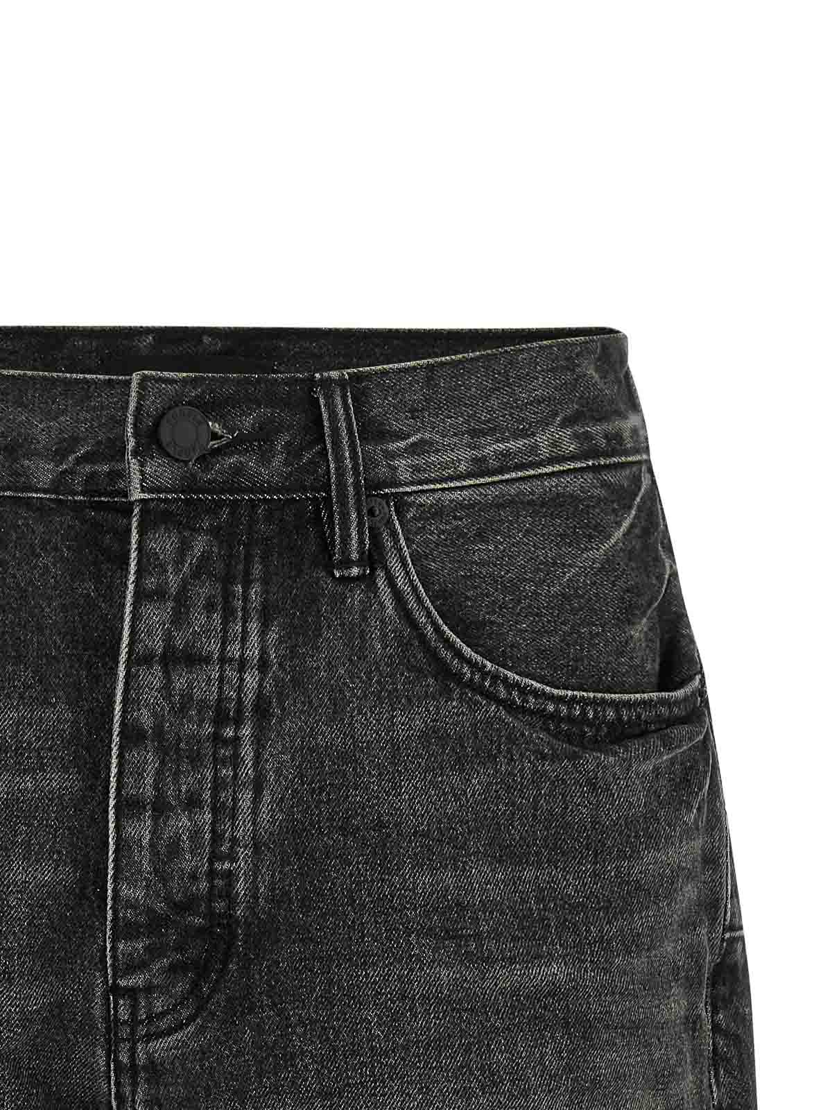 p059 kamari'バミューダショーツ。染め加工を施したコットンデニム生地を使用した、ワイドレッグ、フロントボタン留め、ポケット5つ、裾はローカット、バックロゴタグ付き。