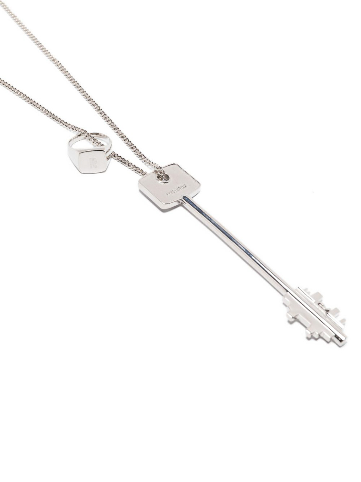 シルバー、トーンキーペンダントスクエアキーヘッドリングアタッチメントチェーンネックレス