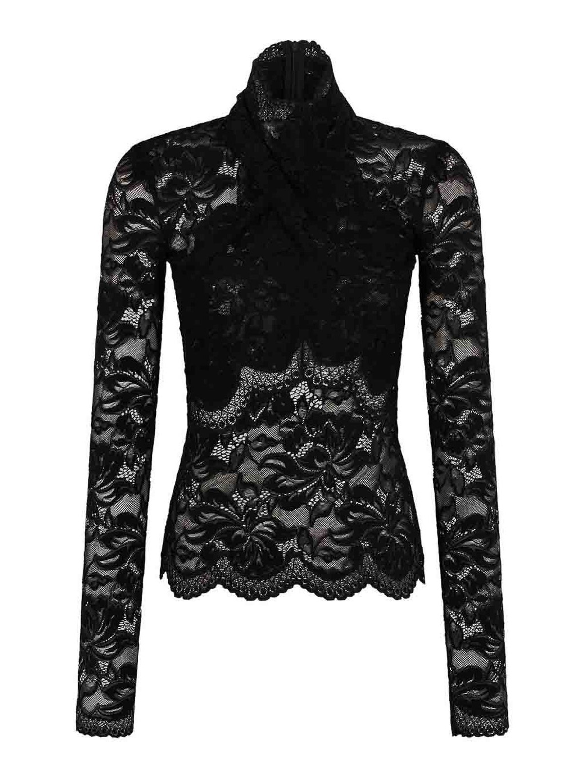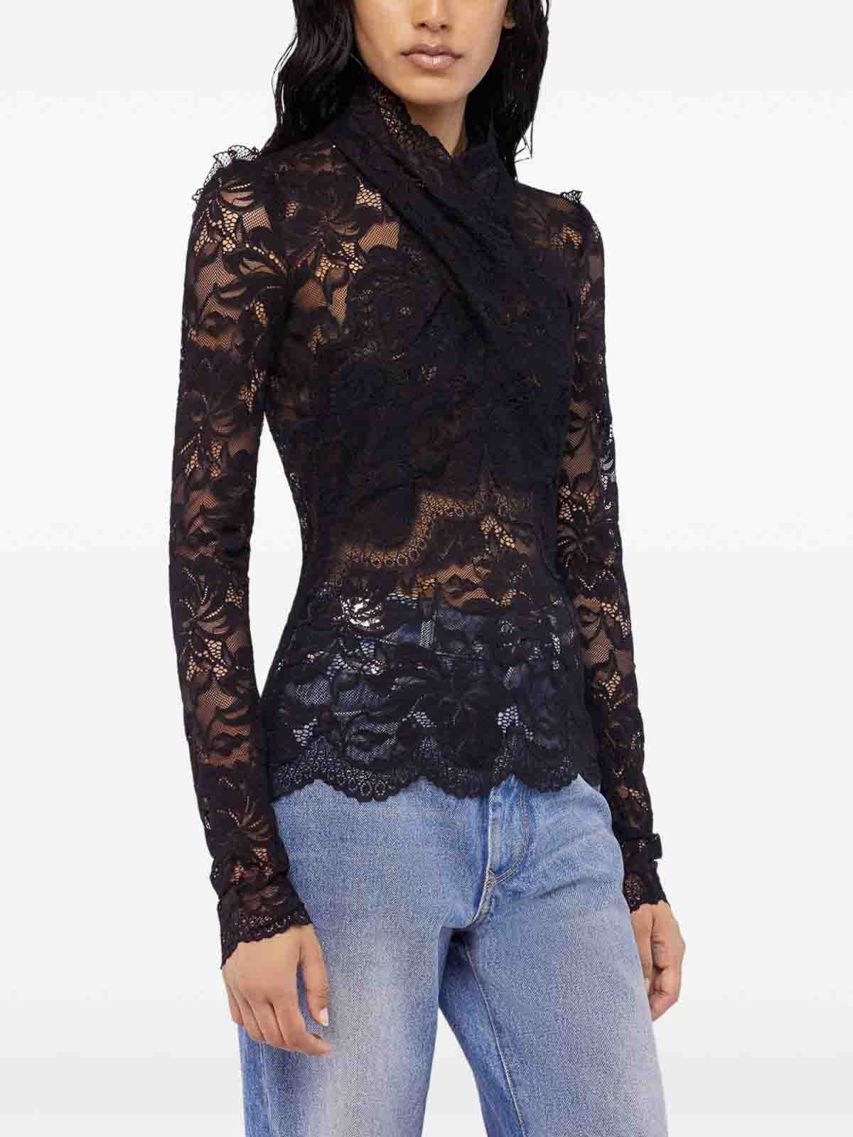 Rabanne ブラックハイネックレースロングスリーブトップ