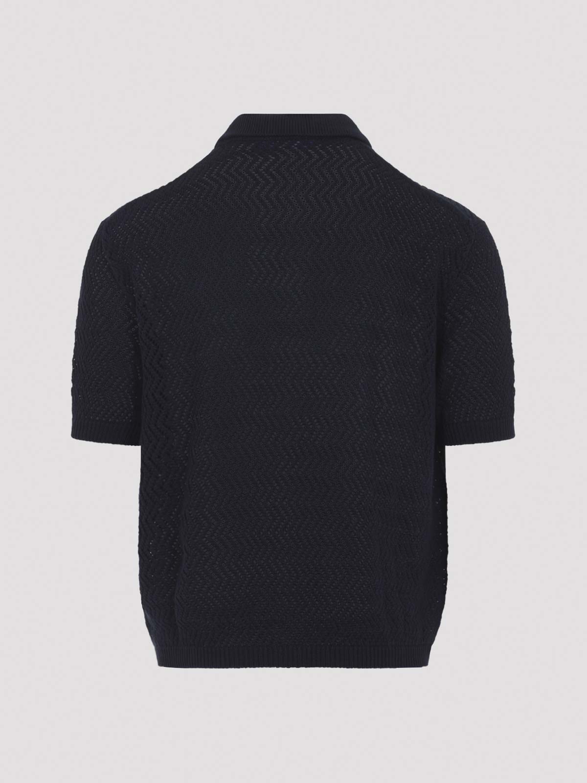 ラルフローレンパープルレーベルクラシックチャーメインネイビーブルーコットンショートスリーブポロカーディガン。ピュアクラシックチャーメインネイビーブルーコットンカーディガン、リブ編みのポインテッドカラー、フロントボタン留め、ショートスリーブ、ストレートヘム、リブ編みのエッジ、全体に穴あきディテール。