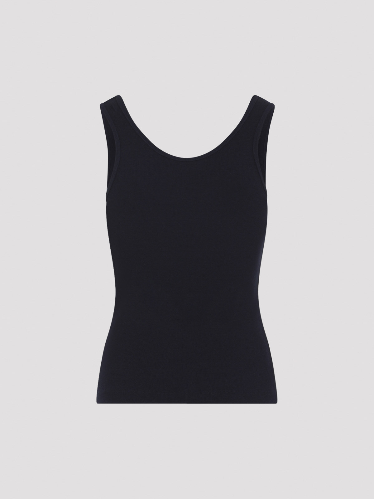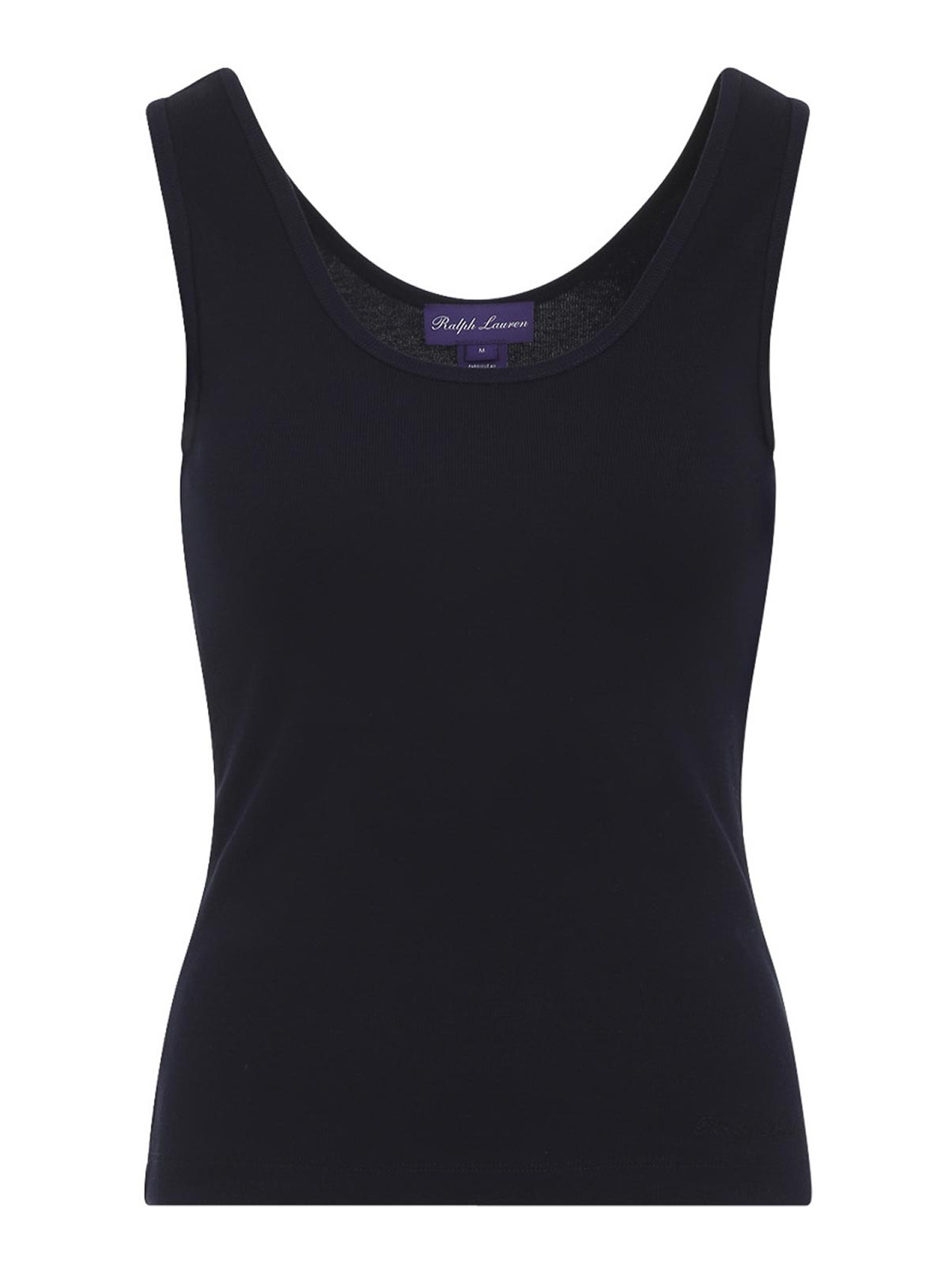 ラルフローレンコレクションネイビーブルーコットンエリスタンクトップ。コットンとモーダール混紡製、ラウンドネック、ノースリーブ、ストレートヘム、同系色ステッチ。