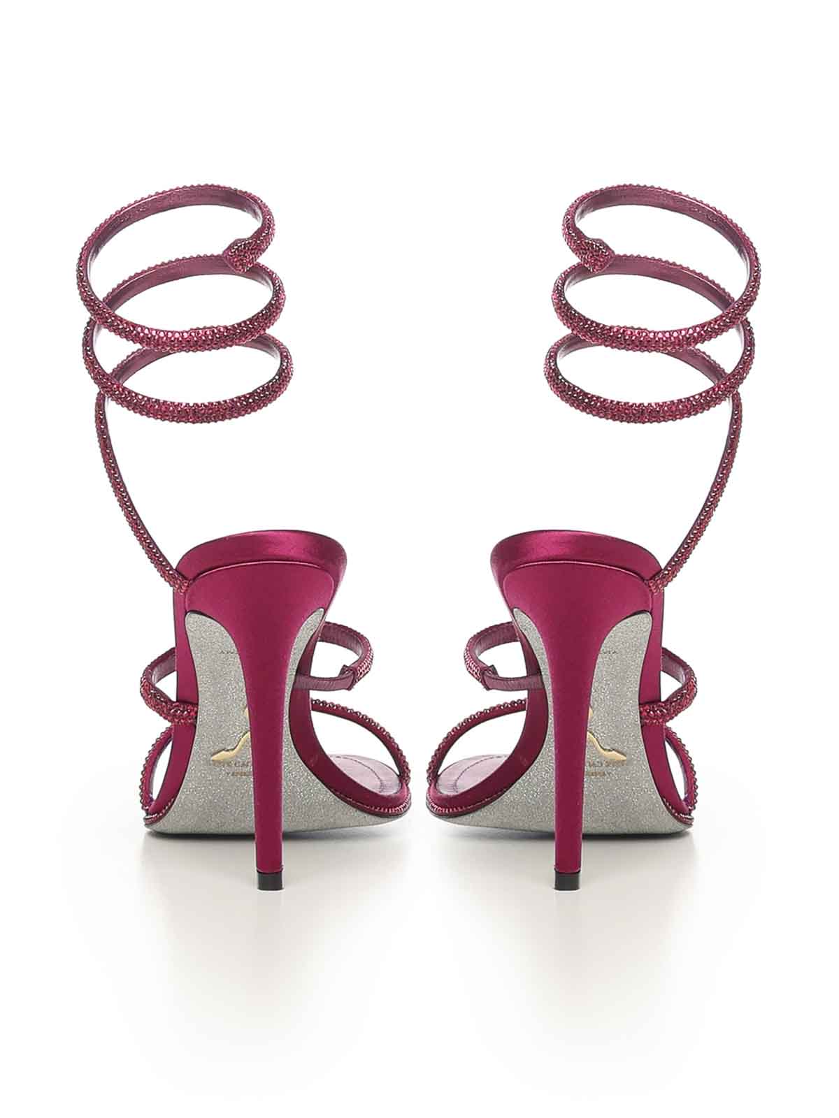 サテン製、クリスタル付きスネークスパイラル、丸いつま先、105mm ヒール、イタリア製、デザイナーカラー:パープル