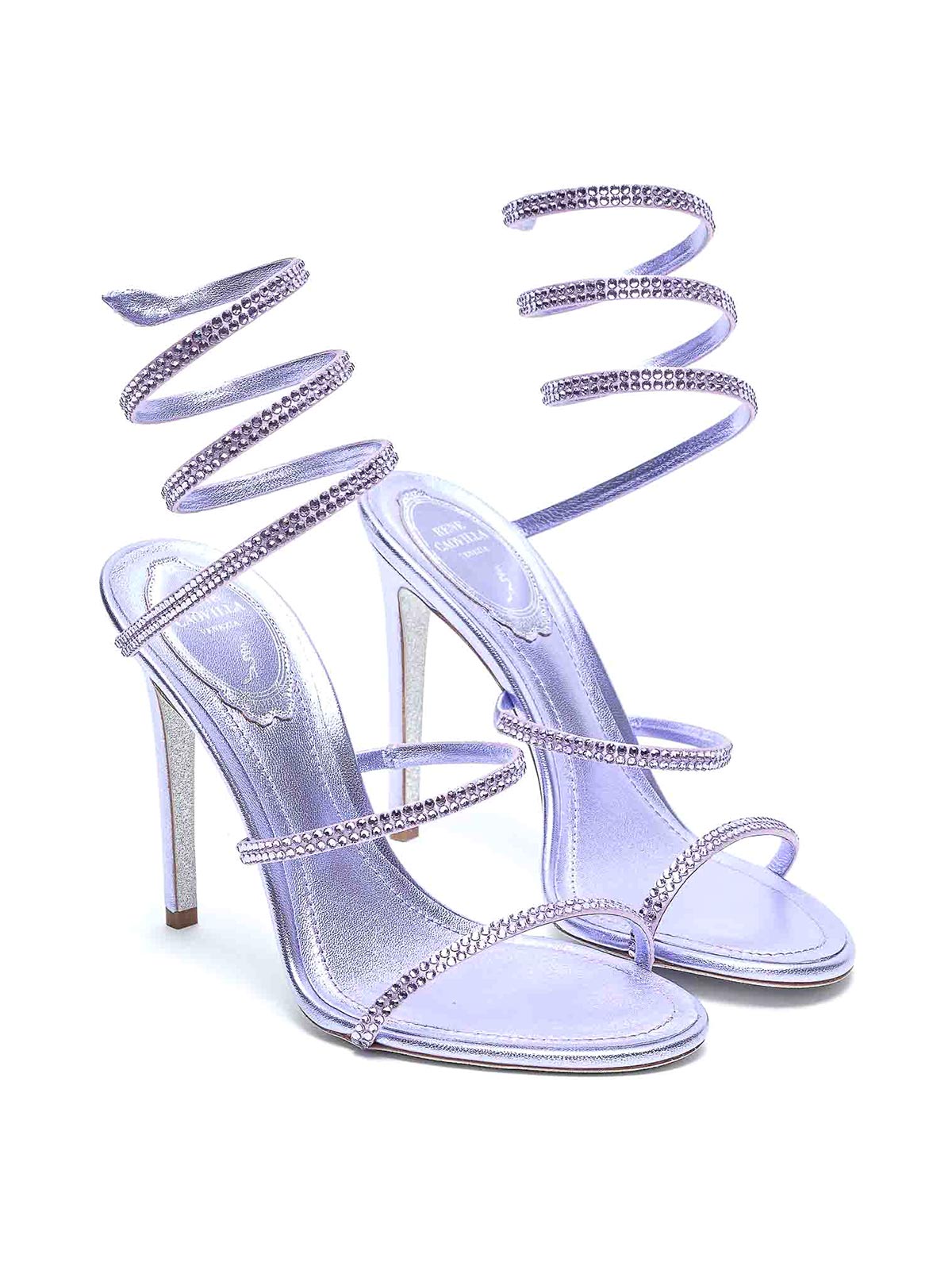Rene' caovilla ライラッククレオパンプスサンダル、クリスタルディテール、ポインテッドトゥ