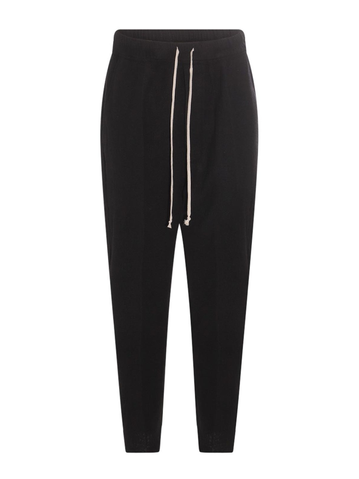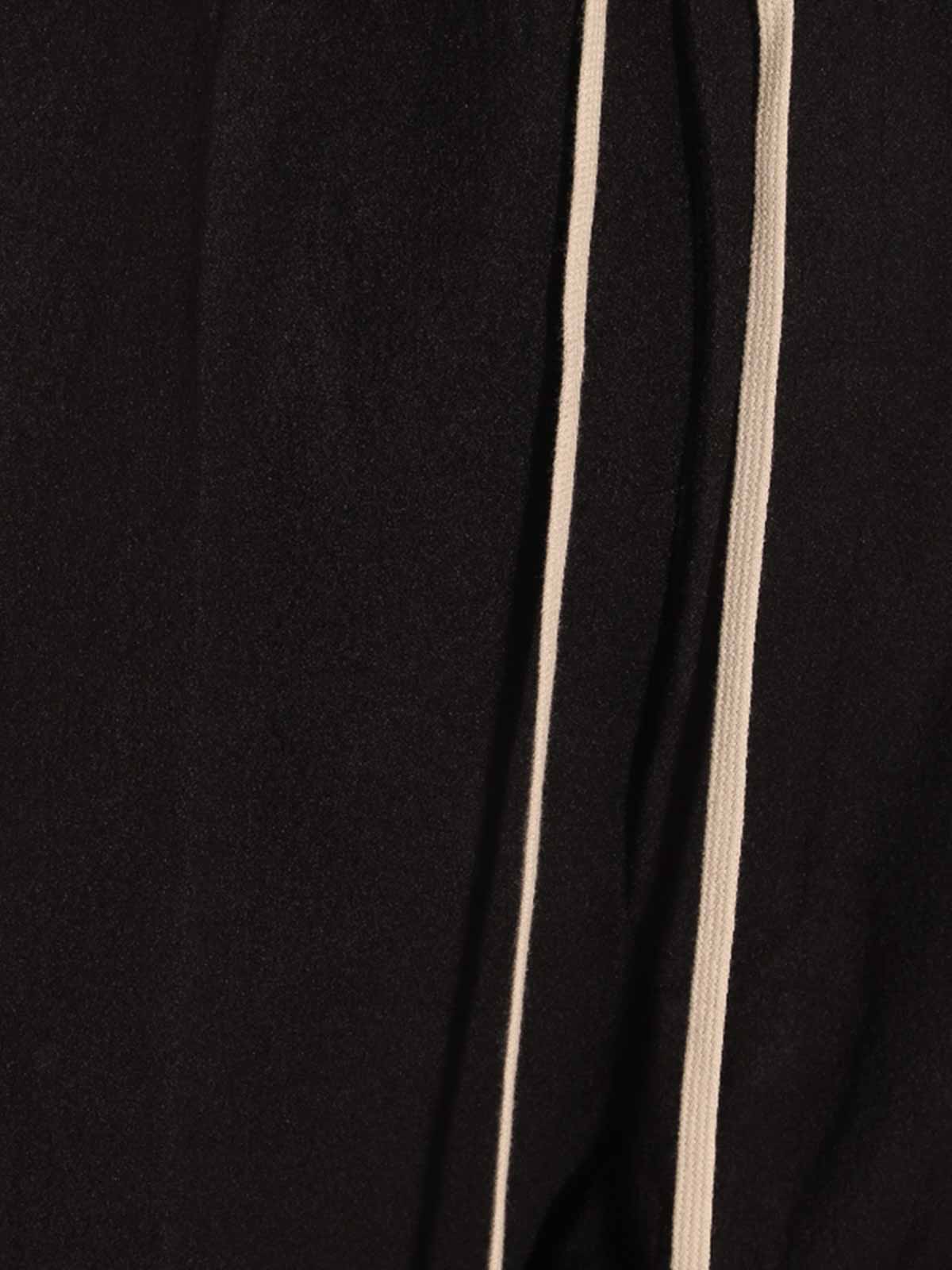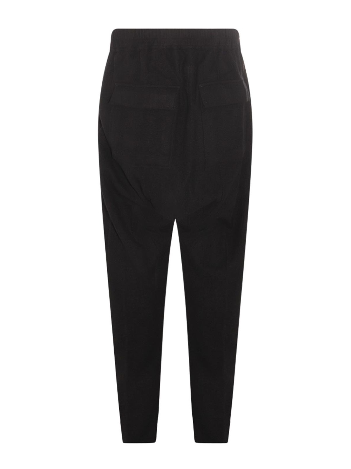 Rick Owensのブラックパンツは、伸縮性のあるウエスト、調節可能なドローストリング、2つのバックポケット、レギュラーな着こなしが特徴です。