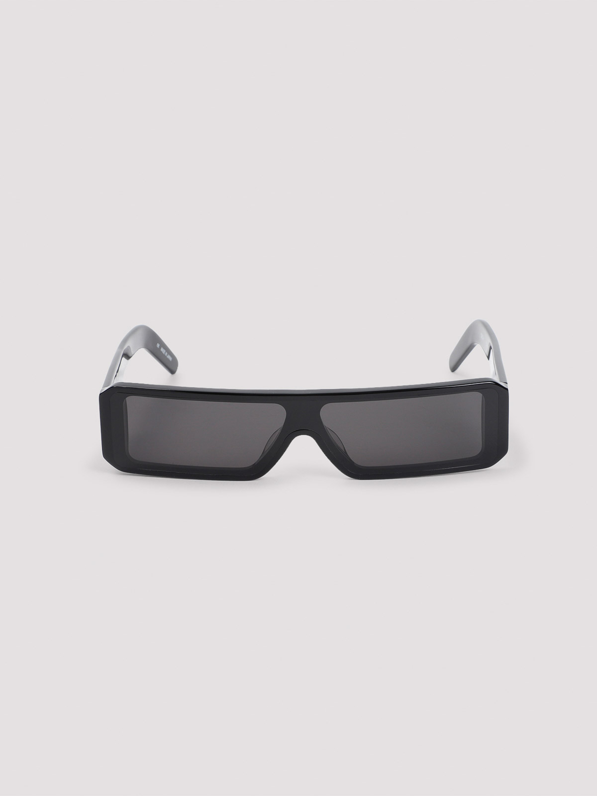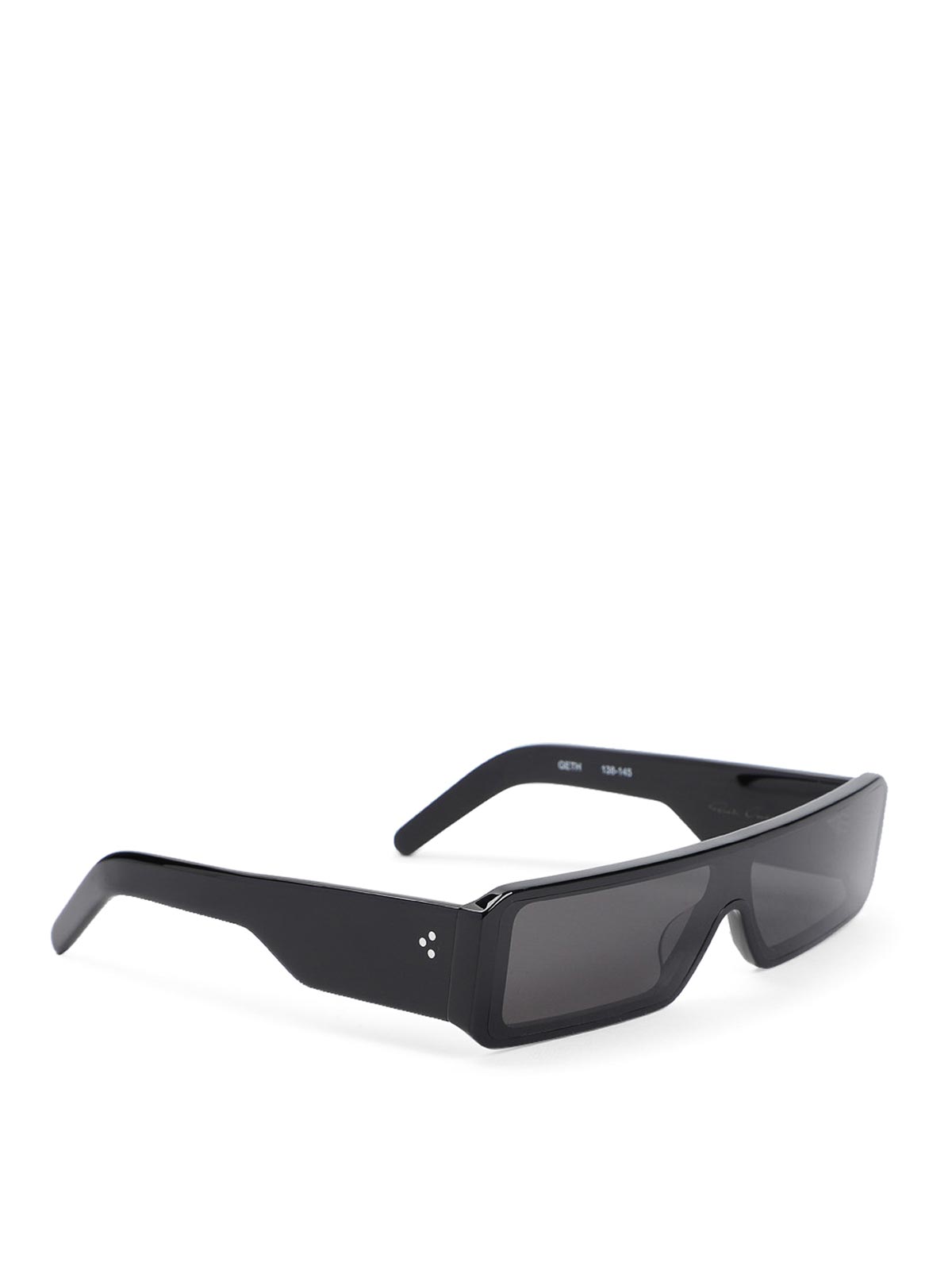 Rick Owens gethshades ブラックサングラスブラックスリム長方形、シェイプフレーム、大胆なテンプル、トーンロゴ付き