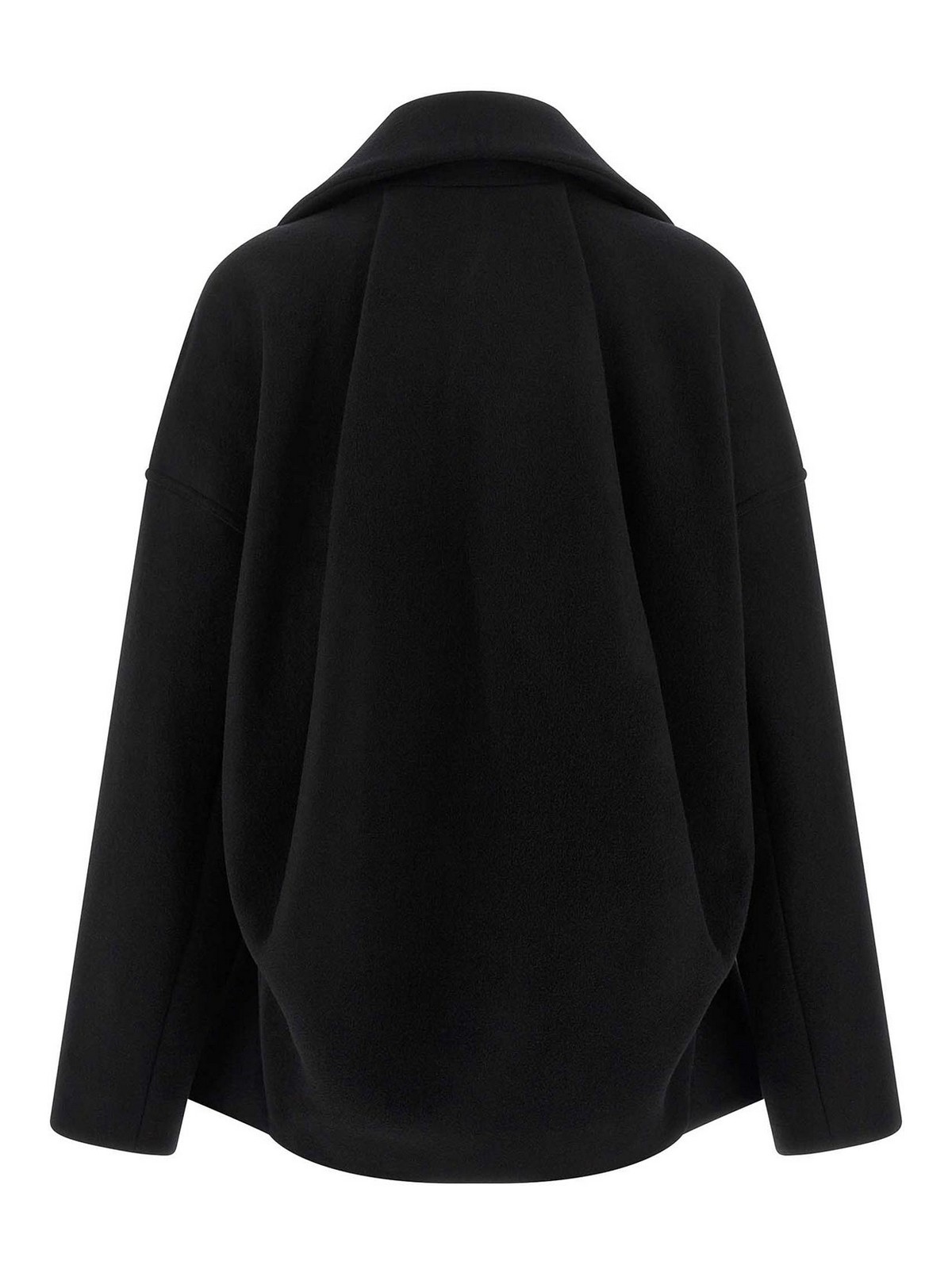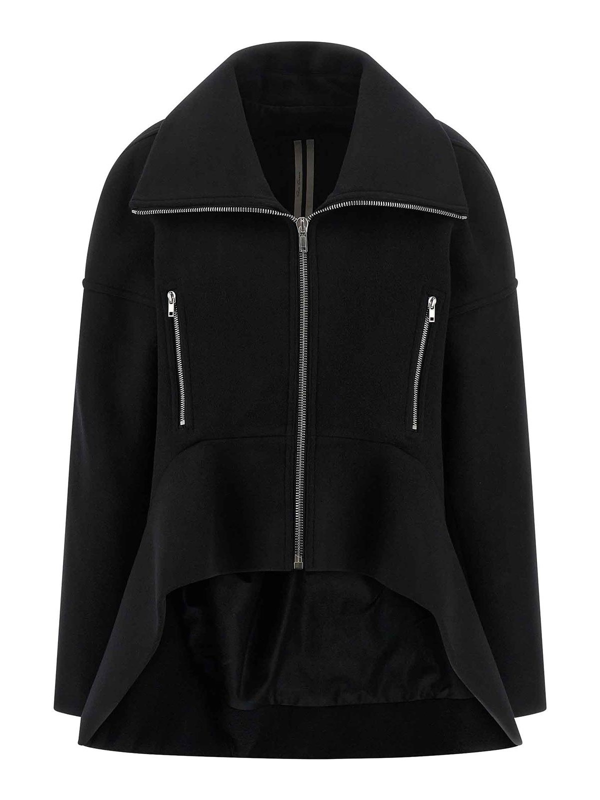 Draculimoのバージンウールクロスコートは、折りたたみ可能な強化ハイネック、フロントファスナー、ポケット、ドロップショルダー付きのロングスリーブ、やや隆起したフロントヘムのアシンメトリーヘムが特徴です。