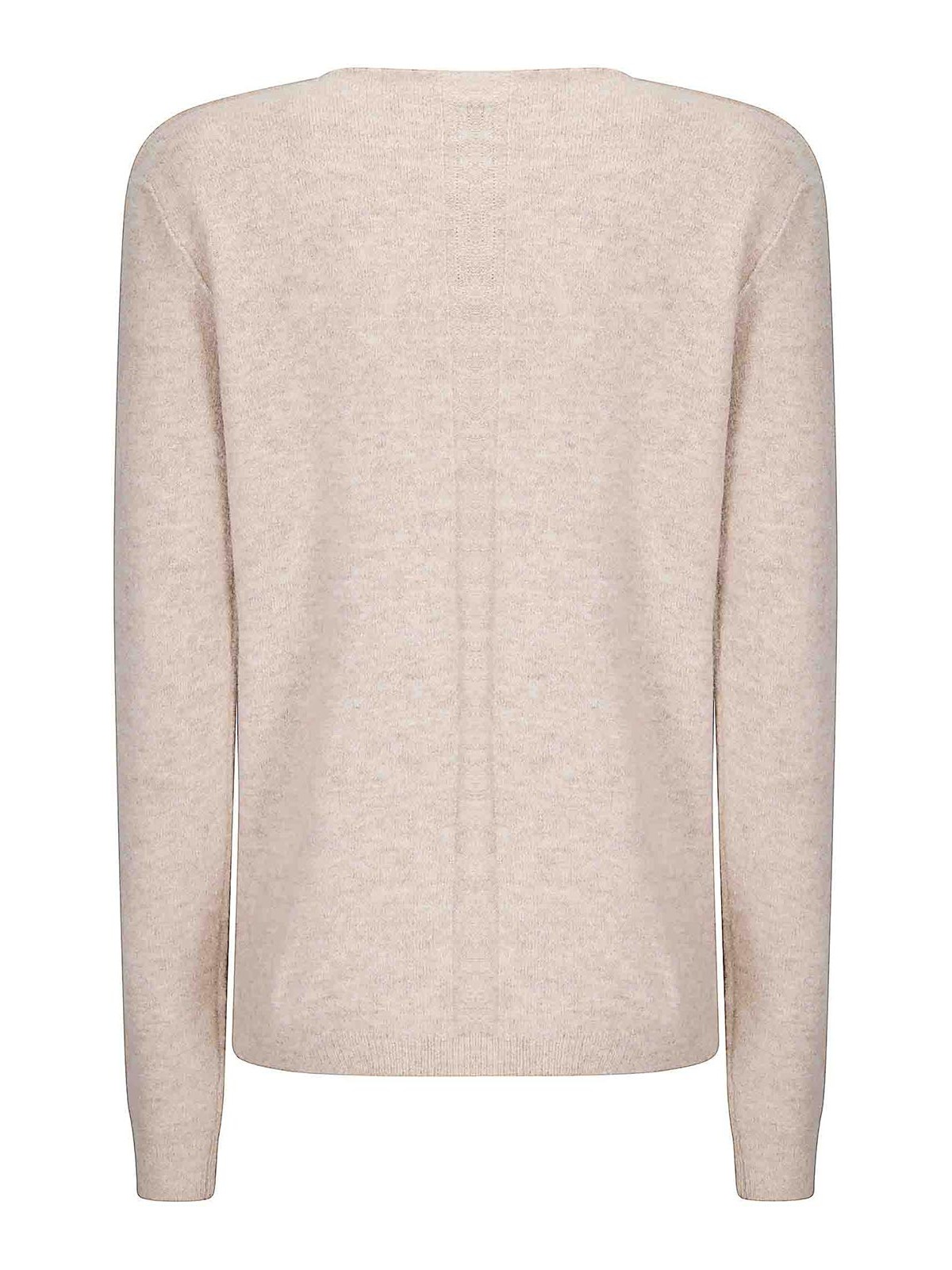 ストレートネックセーター、ロングスリーブ、ルーズフィット、前面にルーズニットのディテール。