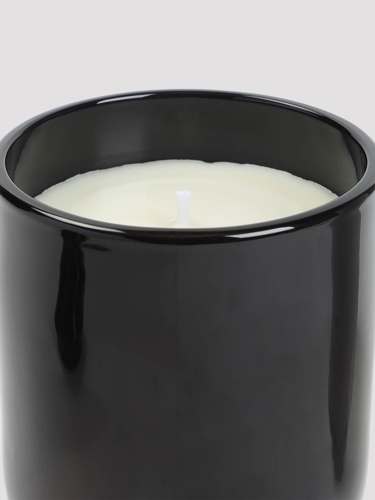 リック・オウエンスのラパリションの香りのキャンドル。ロータス、ラブダナム、ミルラ、フランキンセンス、アンバーグリスの香りがする野菜ベースのブレンド。丈夫で再利用可能な黒いガラスの容器に入っています。ビーガン、虐待フリー、環境に優しい。燃焼時間は最大40時間です。