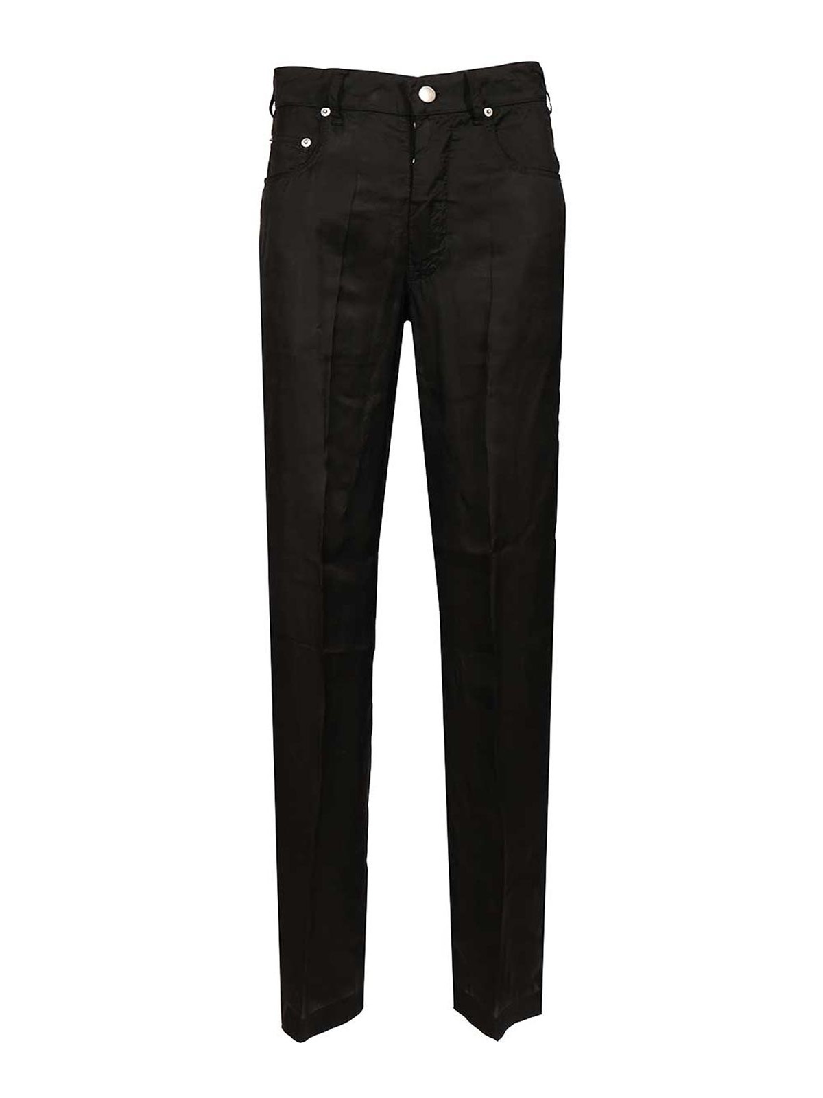 Rick Owens 女性用ゲスジーンズ、イタリア製。ストレートレッグ、クラシックポケット5つ。ミッドライズウエスト。ボタンと隠しジッパー付き。ベルトループ、リベット。ブラックカラー。生地 100% テクニカルバージンウール。ドライクリーニング推奨。
