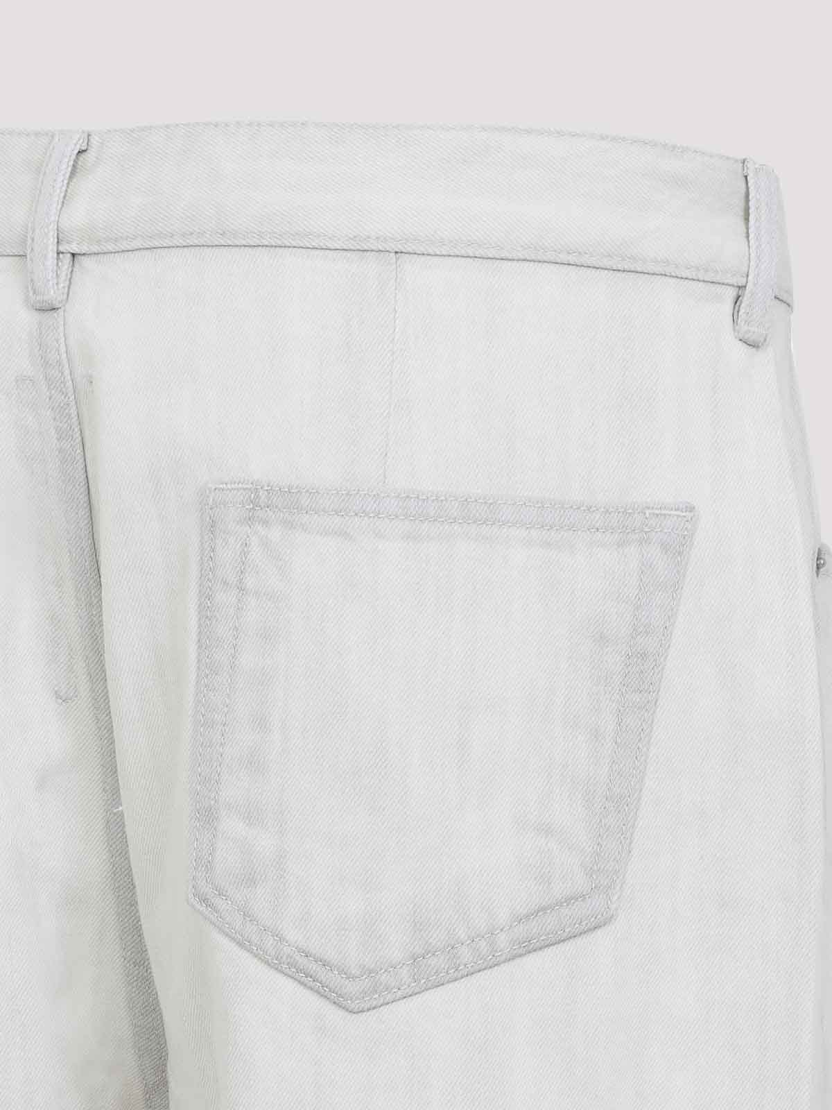 Rick Owens drkshdw ミルクウォッシュホワイトコットンゲスジーンズ。ピュアミルクウォッシュホワイトコットンジーンズ。フロントコンシールジッパー留め、フロントボタン留め、ベルトループ、5ポケットデザイン、フレアレッグ、ストレートヘム。