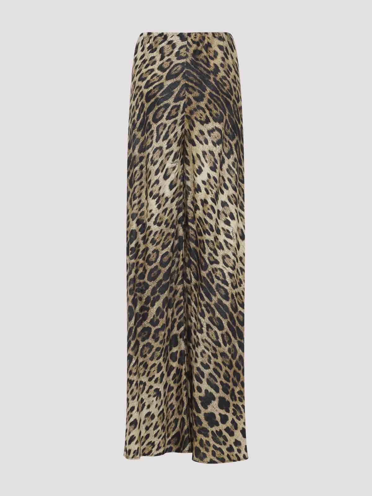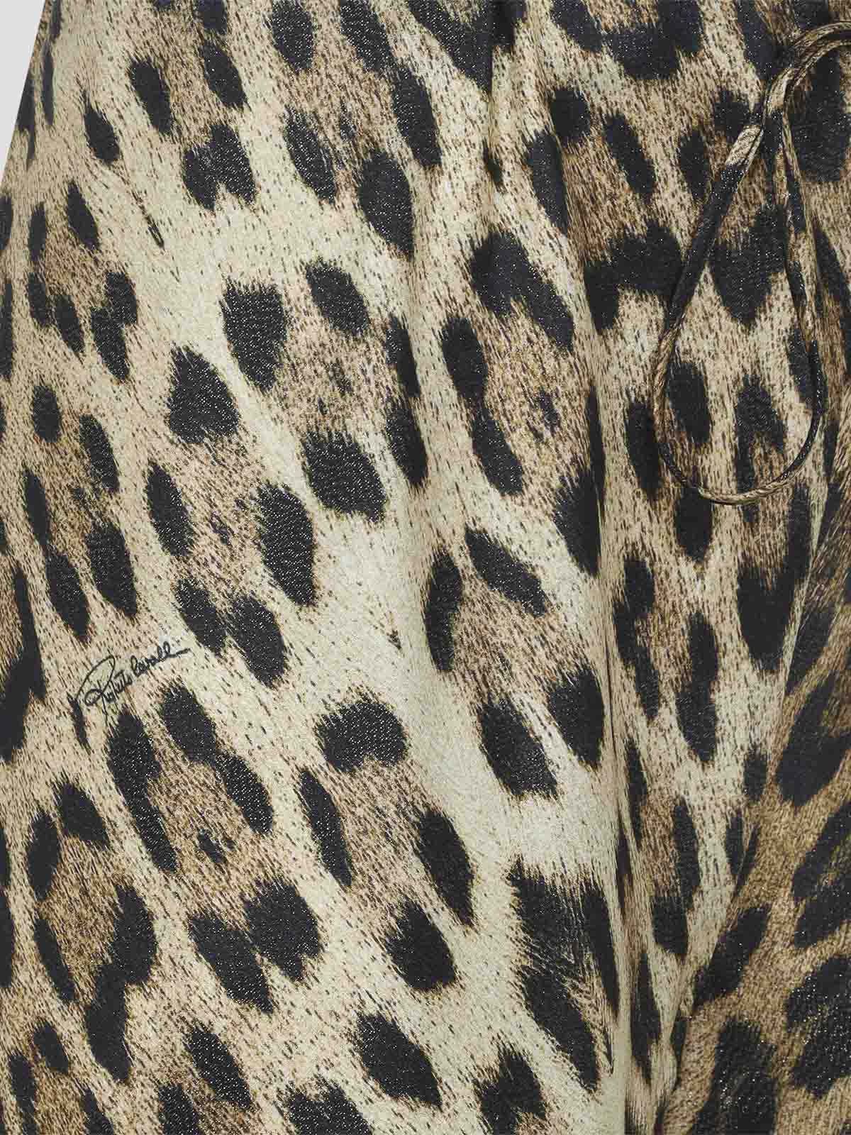 ロベルトカヴァッリジャガーの天然ビスコースパンツ。レオパード柄のビスコースサテンにルレックスのアクセントが効いており、ウエストにはドローコード、サイドにはシグネチャー、ワイドレッグが特徴です。