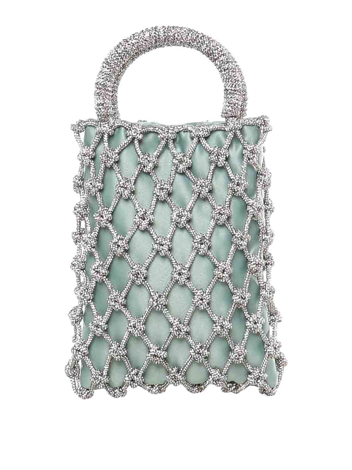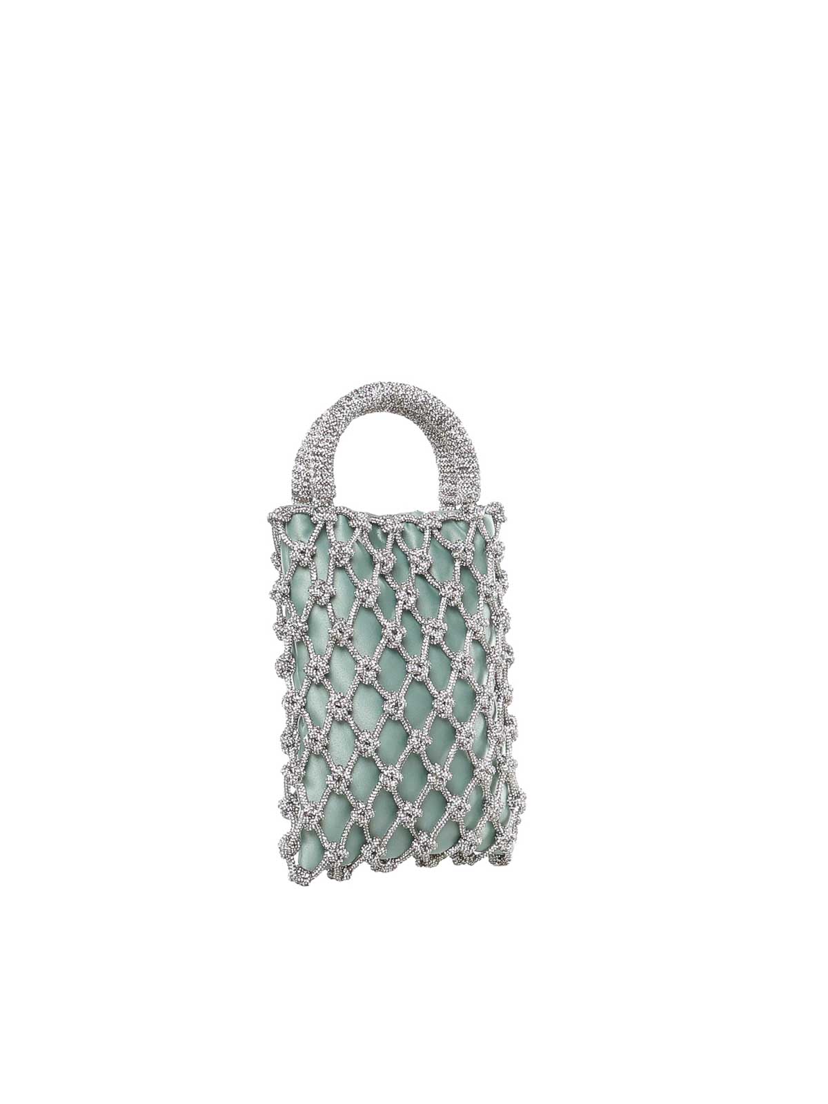 真鍮製、ホットフィックス製、内側はサテン、寸法:20 x 15 x 2 cm、イタリア製、デザイナーカラー:ミント